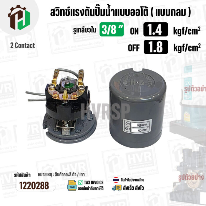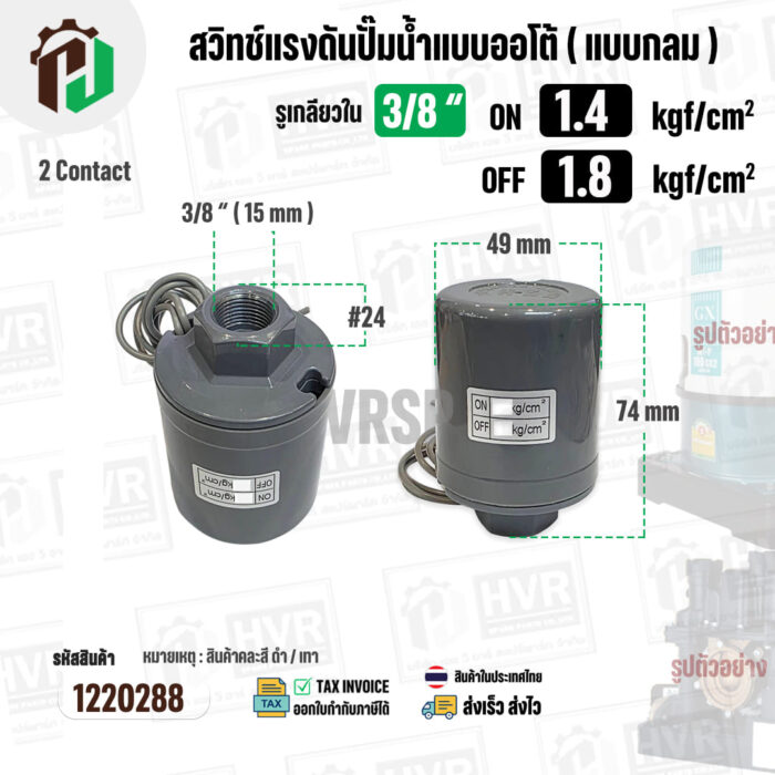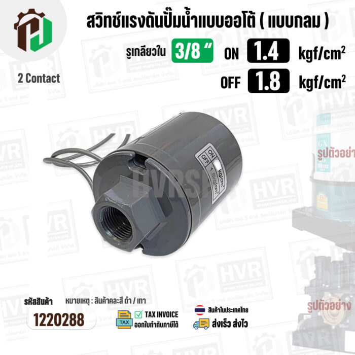 สวิทซ์ปั๊มน้ำออโต้ ( แบบกลม ) ON 1.4 kgf/cm2 / OFF 1.8 kgf/cm2 รูเกลียวใน 3/8″ ( 2 Contact ) #1220288