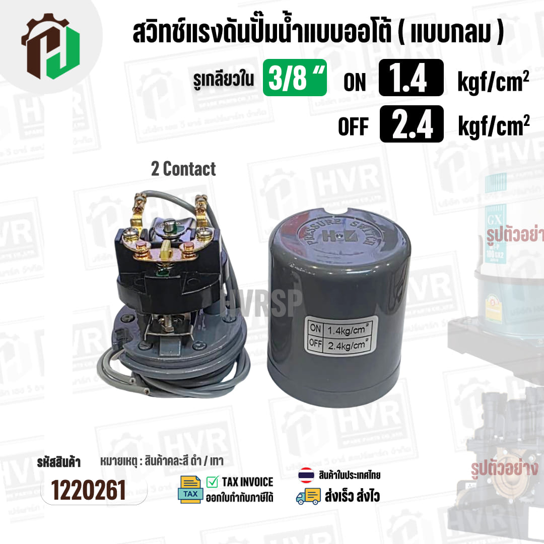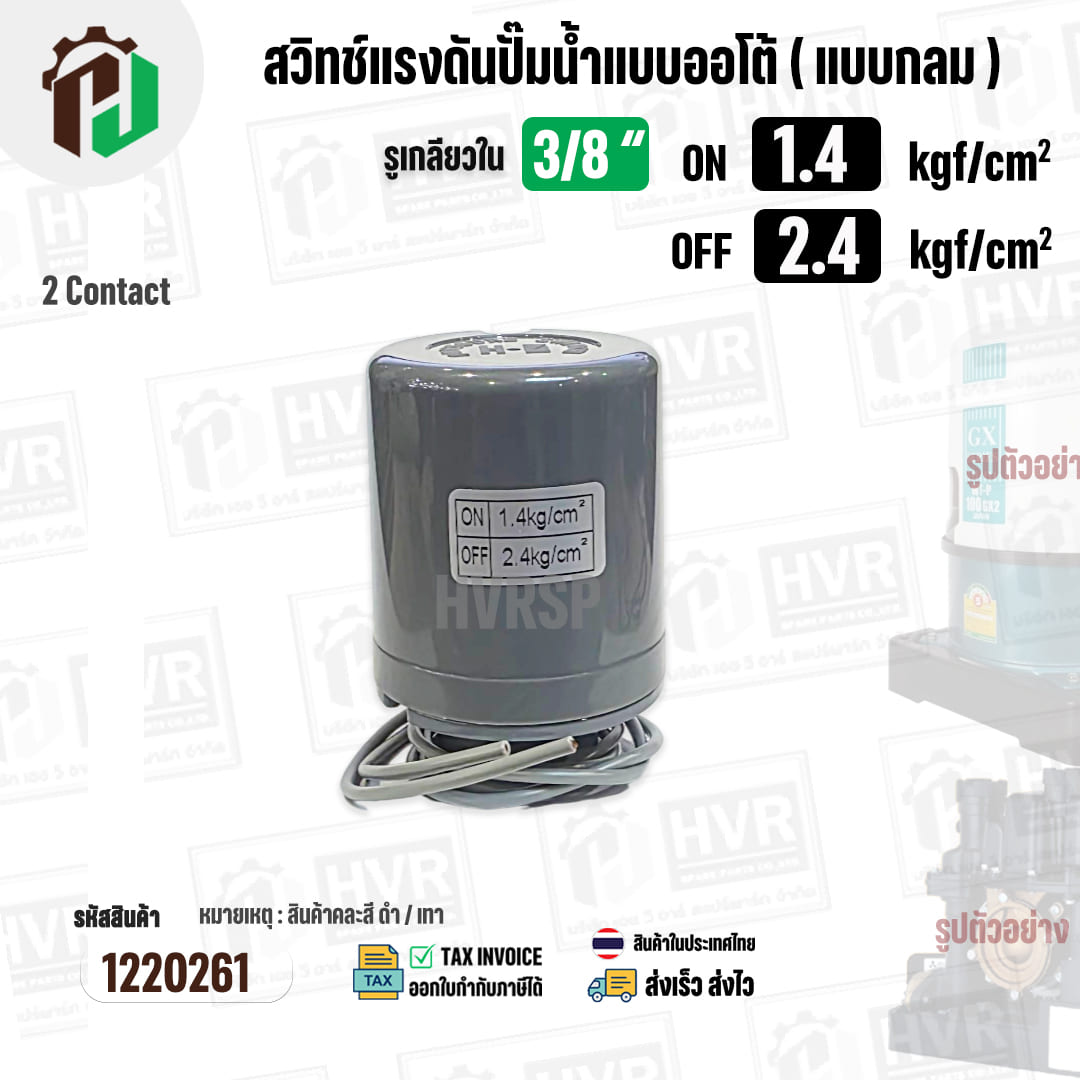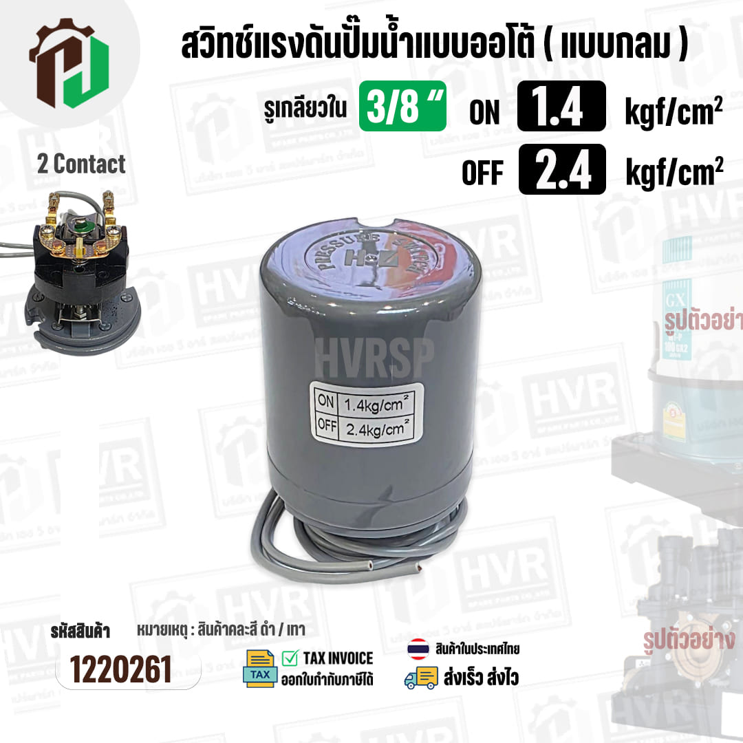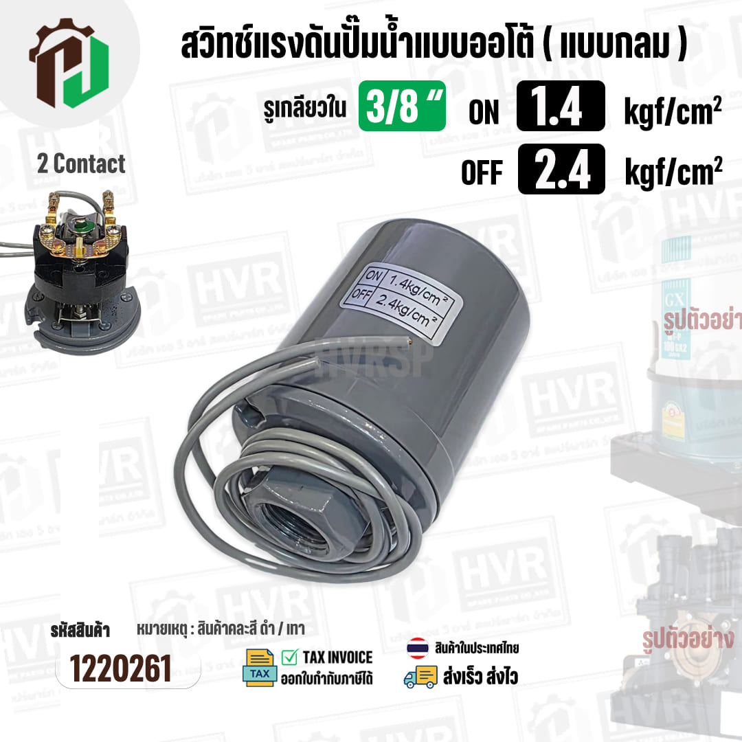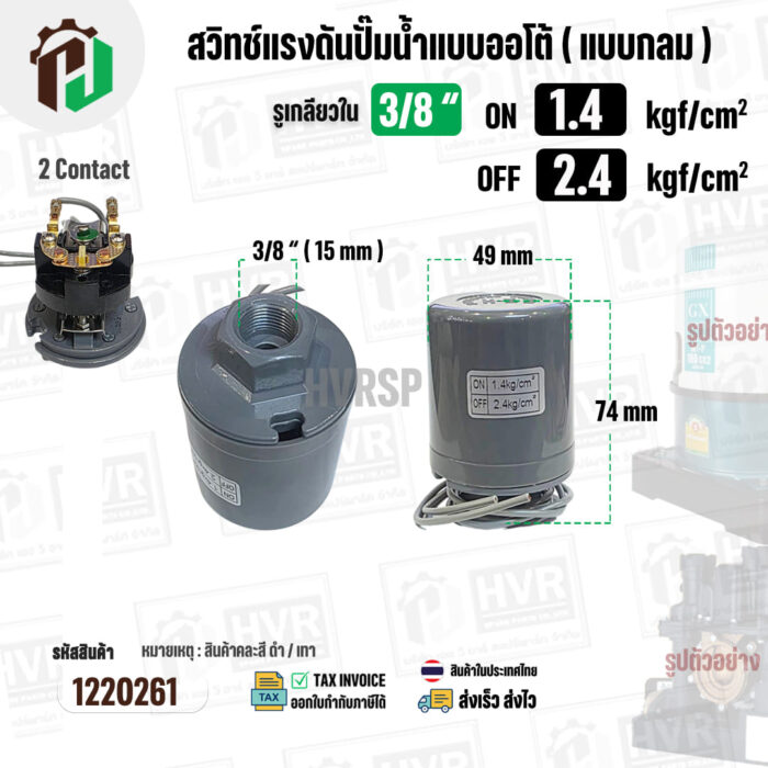 สวิทซ์ปั๊มน้ำออโต้ ( แบบกลม ) ON 1.4 kgf/cm2 / OFF 2.4 kgf/cm2 รูเกลียวใน 3/8″ ( 2 Contact ) #1220261
