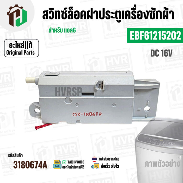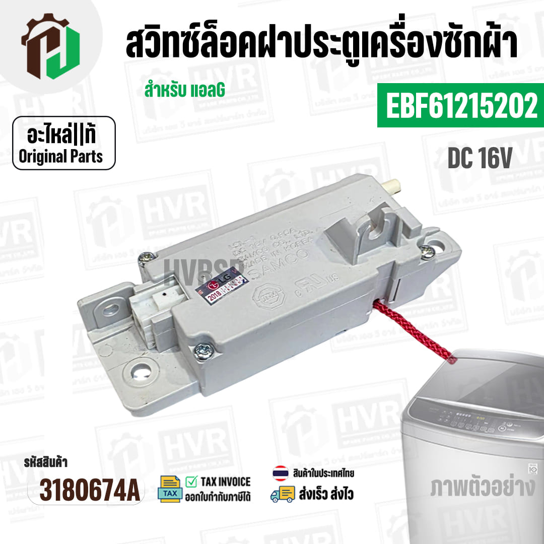 สวิทซ์ล็อคฝาประตูเครื่องซักผ้า LG INVERTER DC 16V 0.95A #EBF61215202 ( แท้ ) #3180674A