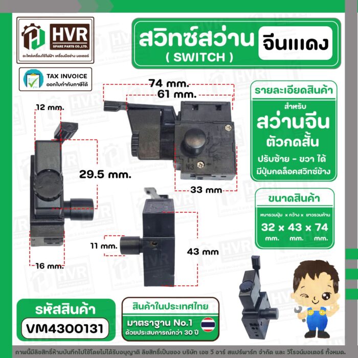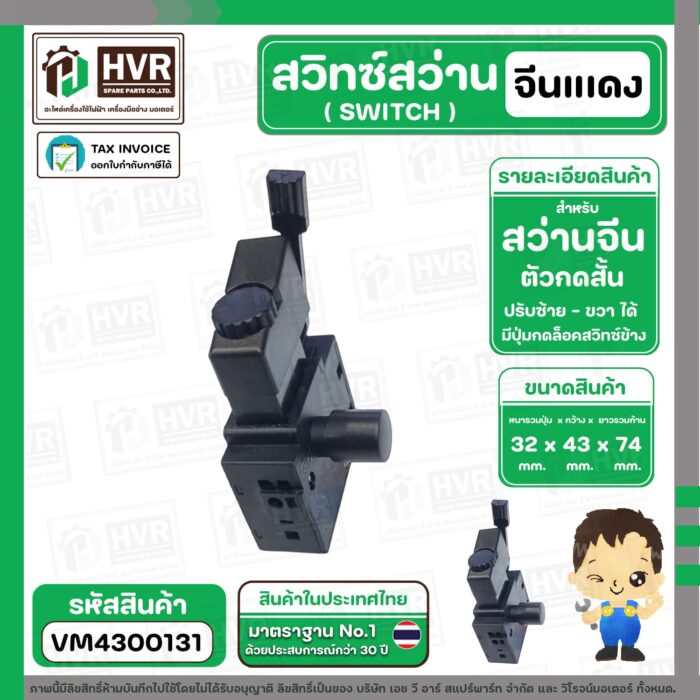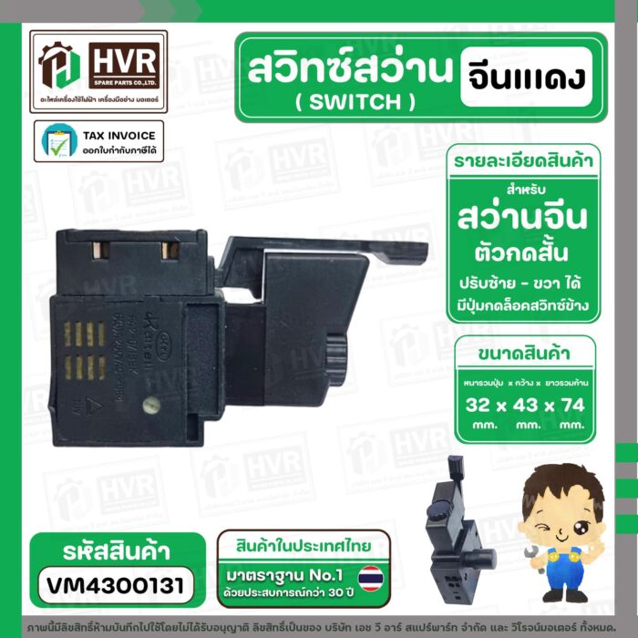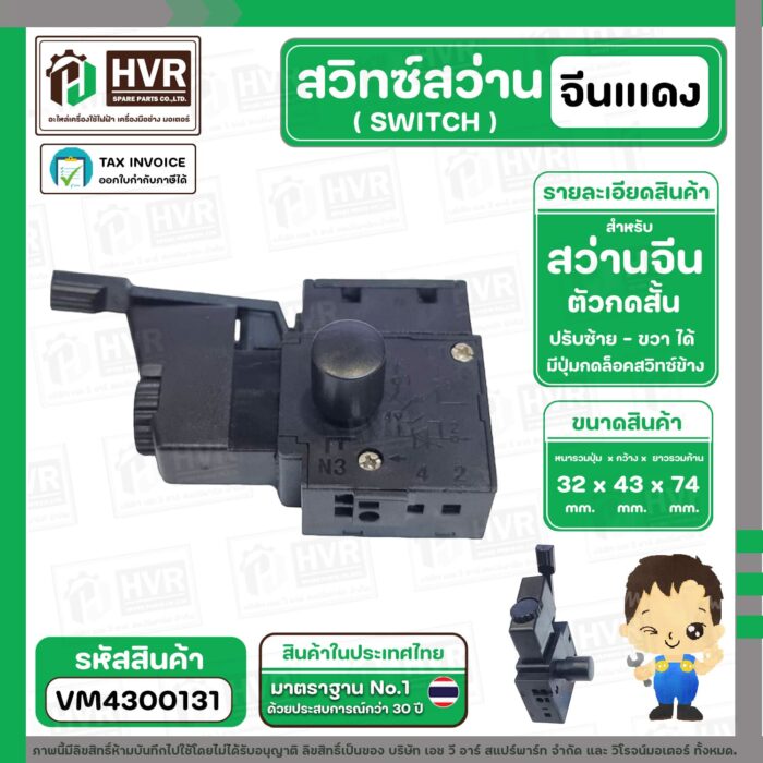 สวิทซ์สว่านจีนทั่วไป ( หน้าสั้น ) ( ปรับซ้าย-ขวา มีปุ่มล็อคสวิทซ์ ) #VM4300131