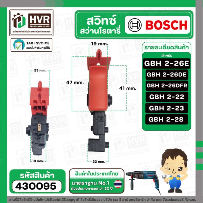 สวิทซ์สว่านโรตารี่ BOSCH (บอส) GBH2-26E , GBH2-26DFR , GBH2-26DRE , GBH2-24 DRE รุ่นใหม่ , GBH 2-28 #430095