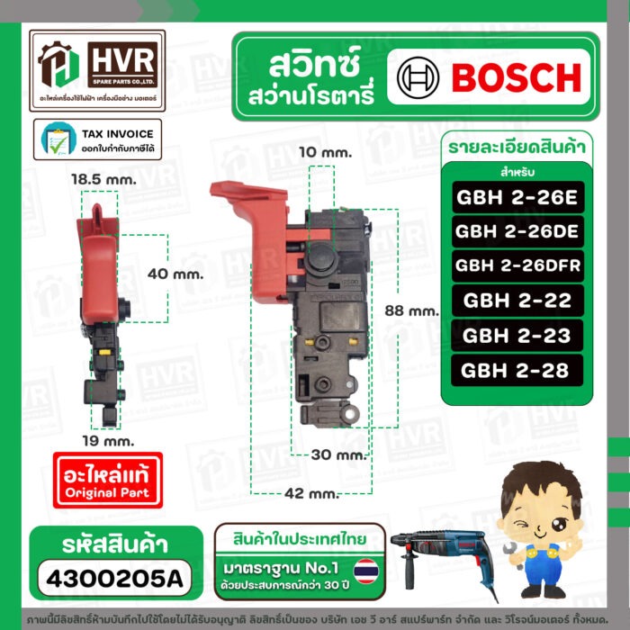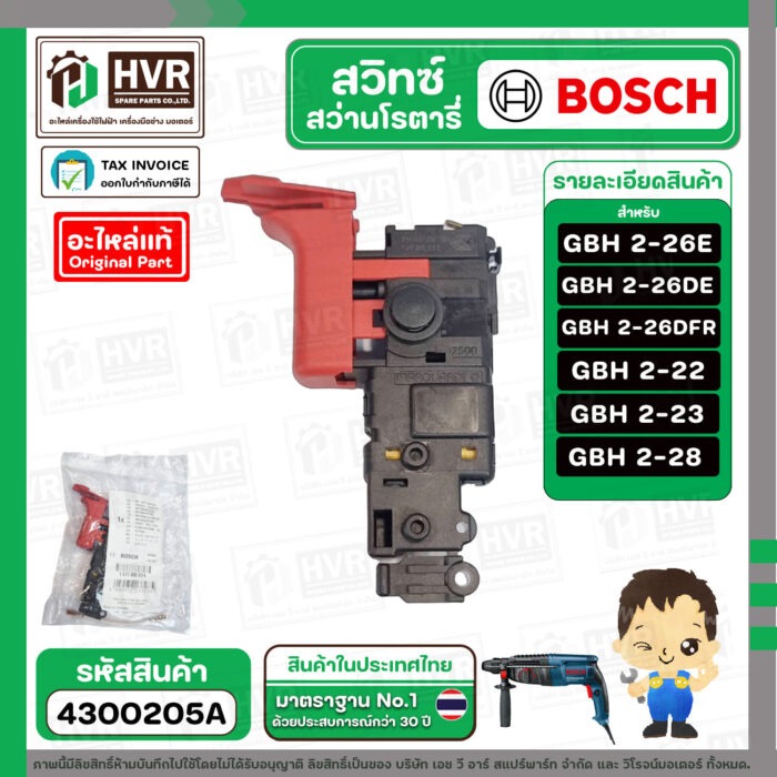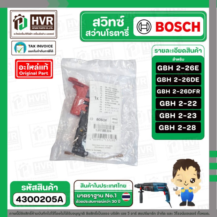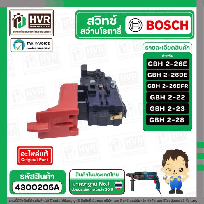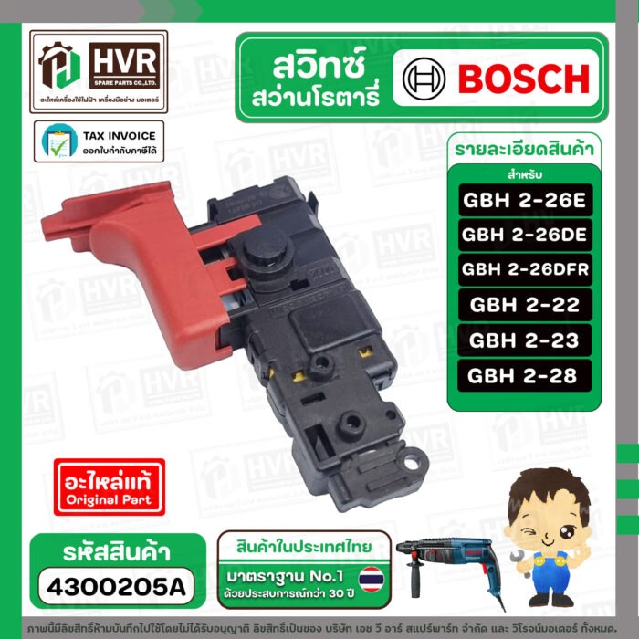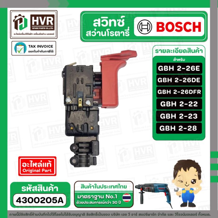 สวิทซ์สว่านโรตารี่ GBH 2-26E , GBH 2-26DFR , GBH 2-26DRE , GBH 2-26DE ,GBH 2-22, GBH 2-23 , GBH 2-28 ( ทุกรหัสต่อท้าย ) ( แท้ ) #1.167.000.6D4 #4300205A