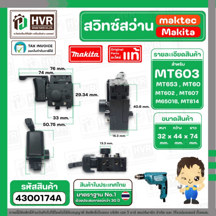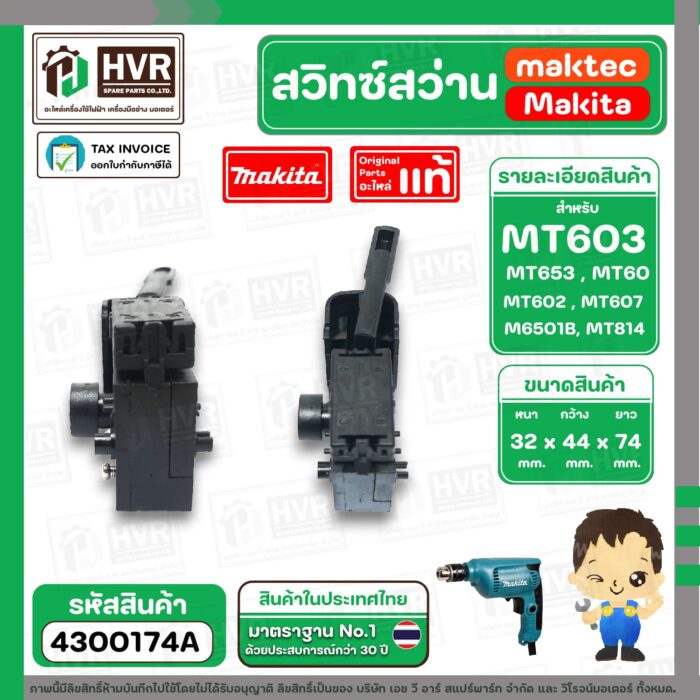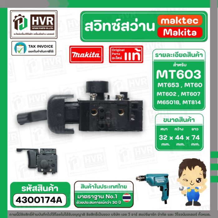 สวิทซ์สว่าน MAKTEC ( แท้ ) MT603 , MT60 , MT653 , MT651 , MT60 2, MT606 , MT607, MT814 ( แท้ ) #4300174A