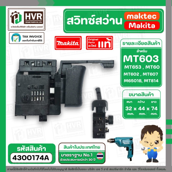 สวิทซ์สว่าน MAKTEC ( แท้ ) MT603 , MT60, MT653, MT651, MT602, MT606, MT607, MT814 , M6501B #4300174A