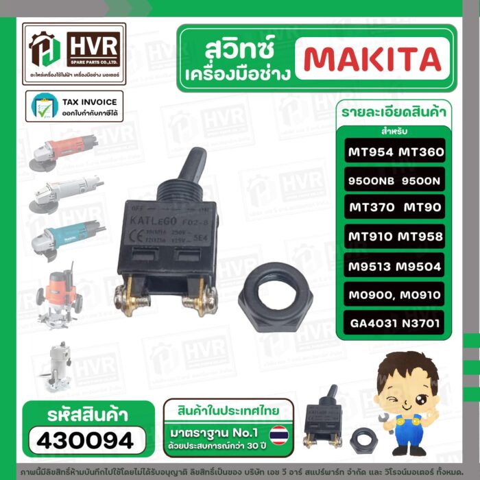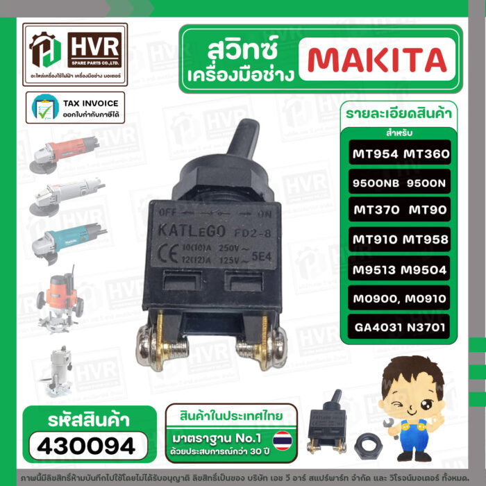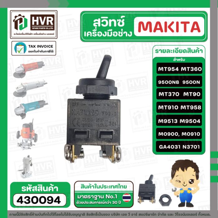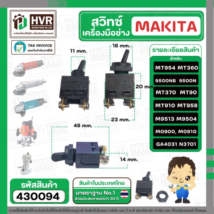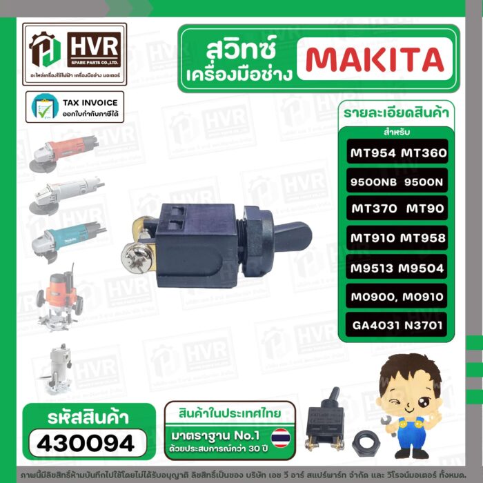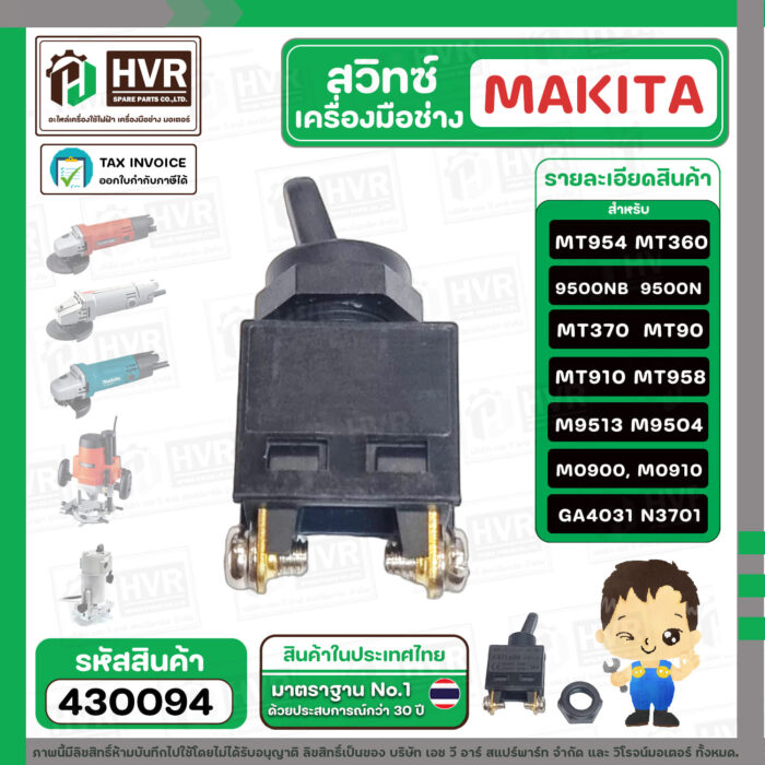 สวิทซ์เครื่องมือช่าง Makita Maktec MT954, 9500N , 9500NB , MT360 , MT370 , MT90 , MT910 , MT958 , M9513 , M9504 ,M0900, M0910 #430094