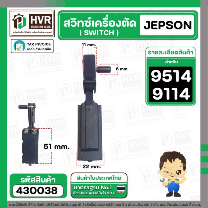 มาเป็นคนแรกที่วิจารณ์ “สวิทซ์ แท่นตัด JEPSON ( เจ็ปสัน ) 9514 , 9114 #117 #430038”