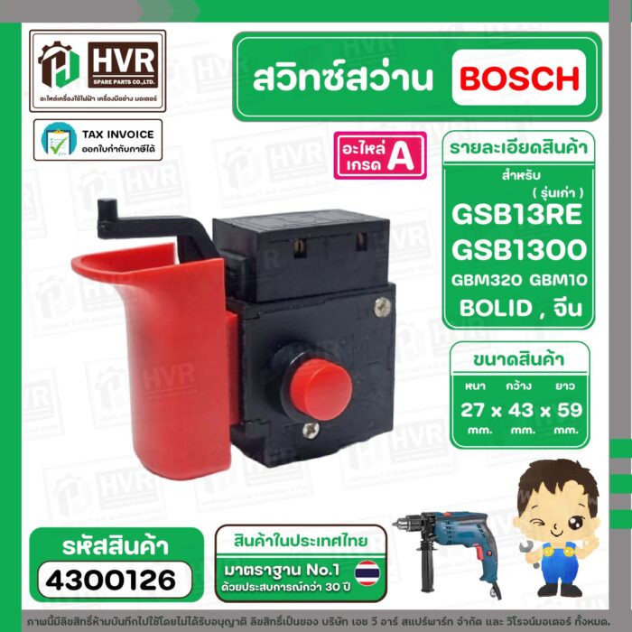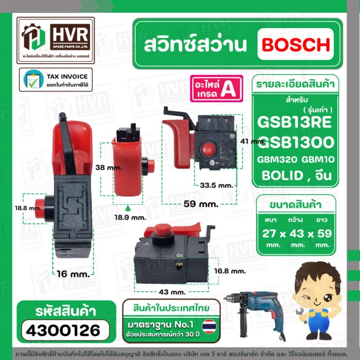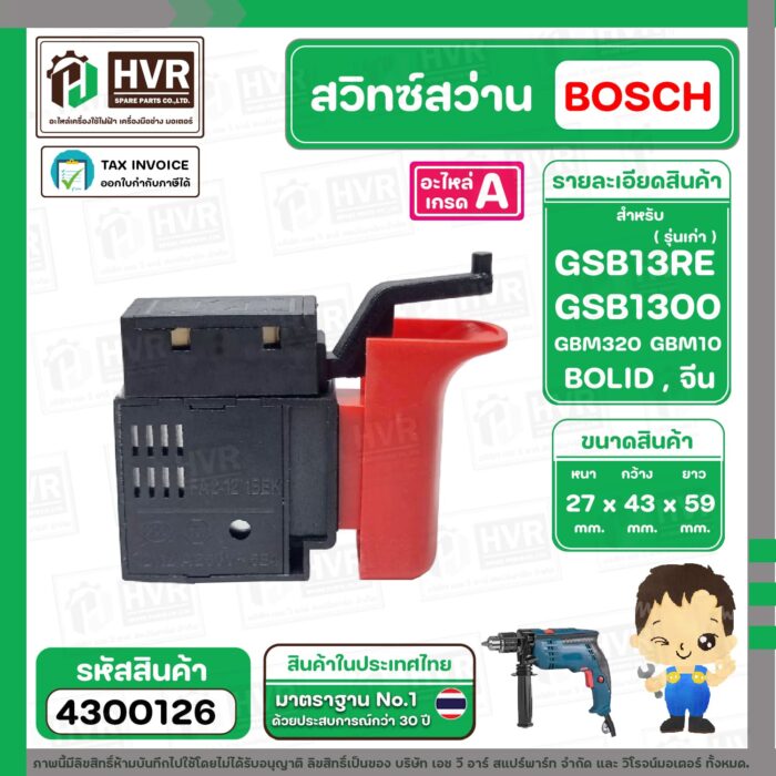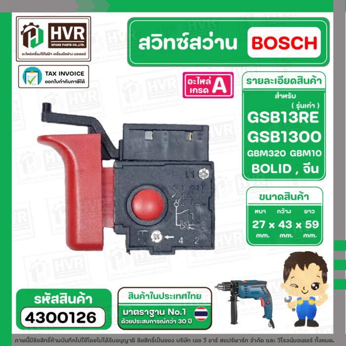 สวิทซ์สว่าน BOSCH GSB13RE รุ่นเก่า, GSB1300, GBM320, GBM10 , BOLID ( จีน ) ( #81 )