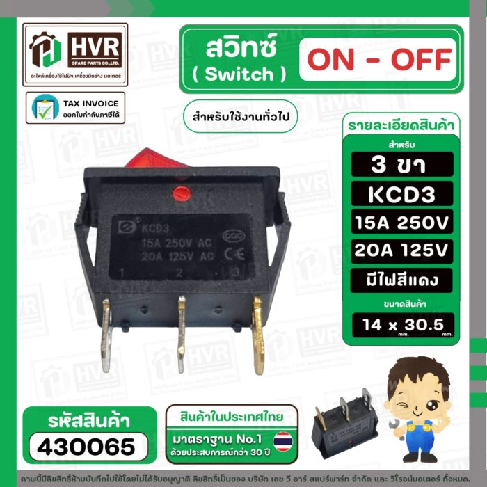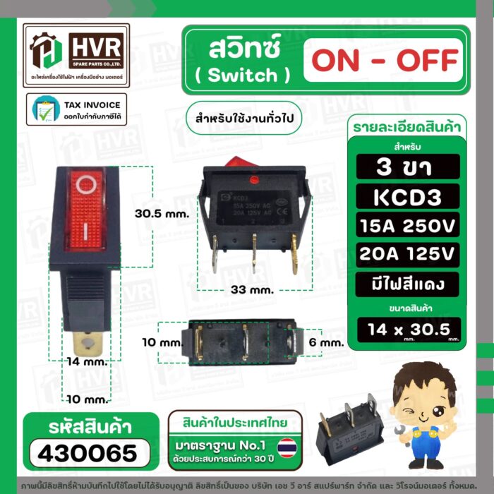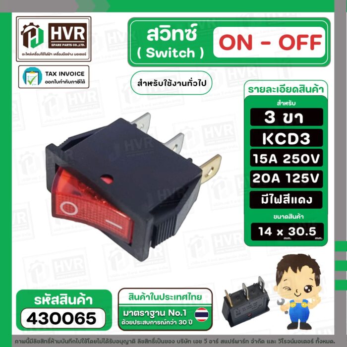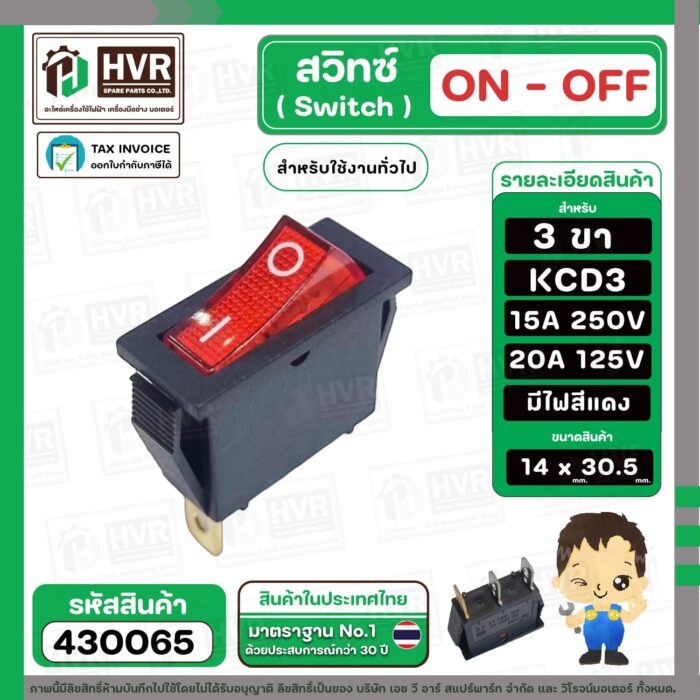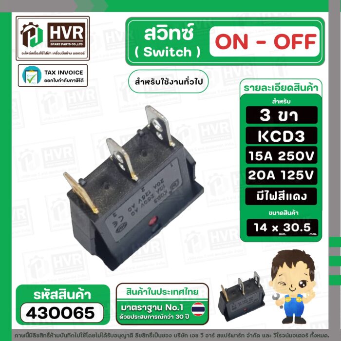 มาเป็นคนแรกที่วิจารณ์ “สวิทซ์ ON-OFF 3 ขา 15A 250 V ( หนาแปลน 16 x 32 mm. ฐาน 13 x 26 ) (ไฟแดง ) ( บาง ) ( KCD3 ) #430065” ยกเลิกการตอบ