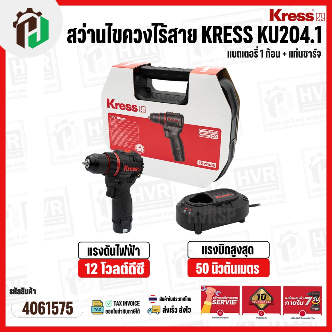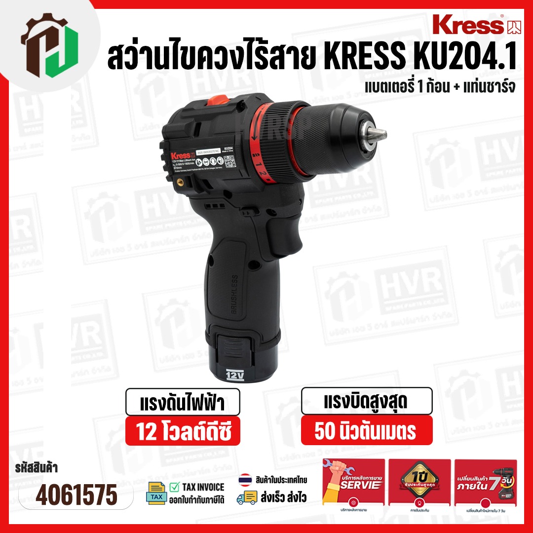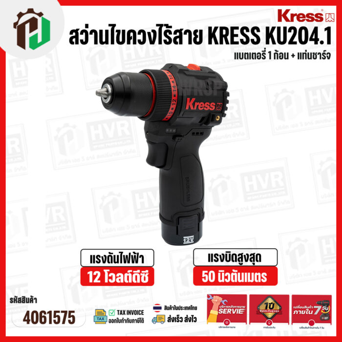 สว่านไขควงไร้สาย 1/4″” KRESS ( เครส ) KU204.1 ( 12V ) 50 Nm ( แบตเตอรี่ 1 ก้อน + แท่นชาร์จ ) #4061575
