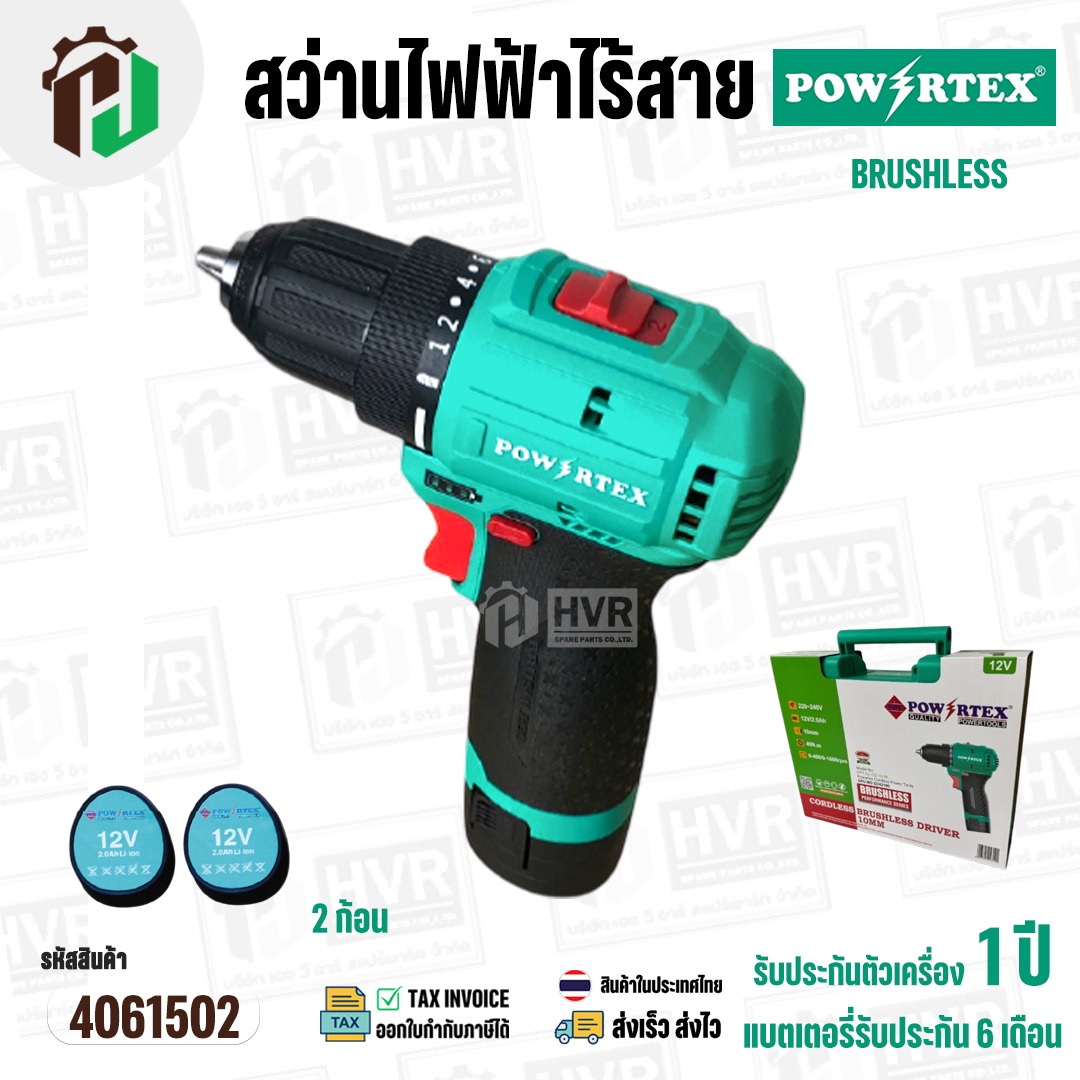 สว่านไฟฟ้าไร้สาย POWERTEX สำหรับงานช่างมืออาชีพ