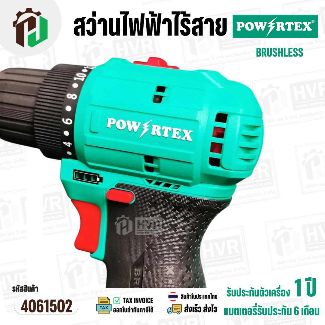สว่านไร้สาย 10mm. POWERTEX รหัสสินค้า PPT-CL-CD-10-BL ( BRUSHLESS ) #4061502