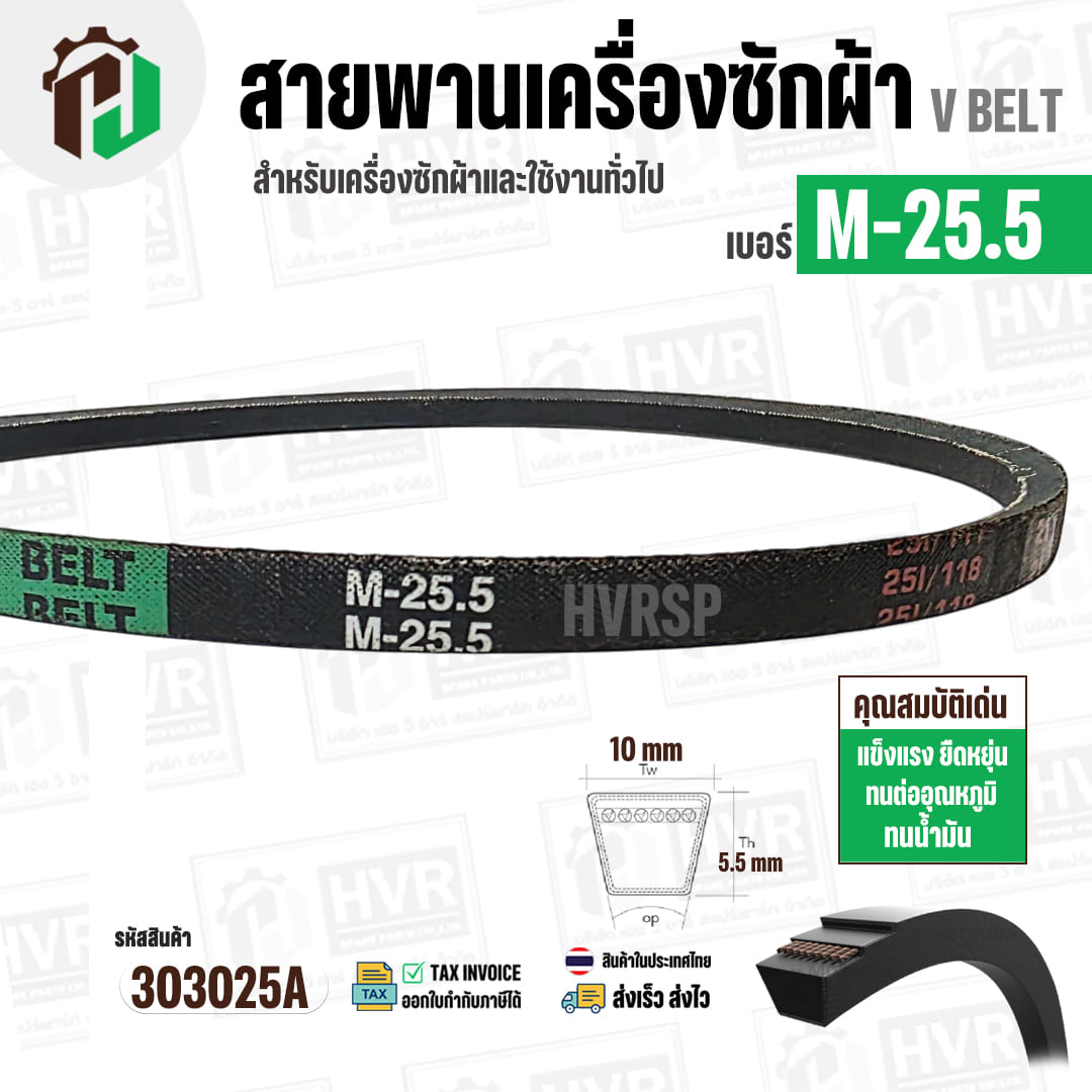 สายพาน M-25.5 ร่อง V (V BELT ) ยี่ห้อ MITSUBA ( มิตซูบา ) ( ทนน้ำมัน แข็งแรง ยืดหยุ่นดี ) #303025A