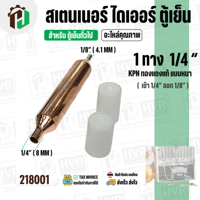 สเตนเนอร์ตู้เย็น 1 ทาง รูขนาด เข้า 1/4″ ออก 1/8″ ยาว 115 mm. ( แบบหนา ) ( 15G ) #218001