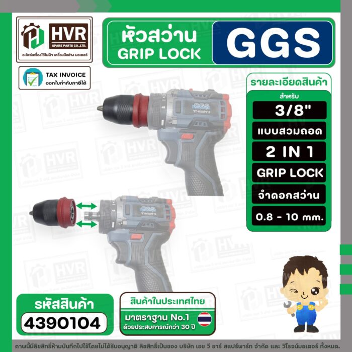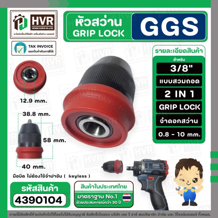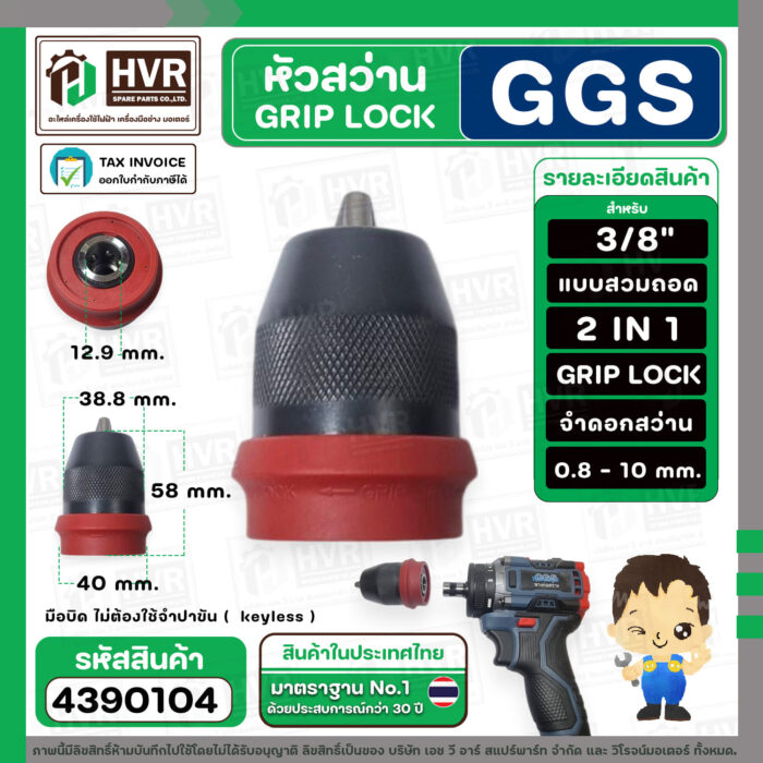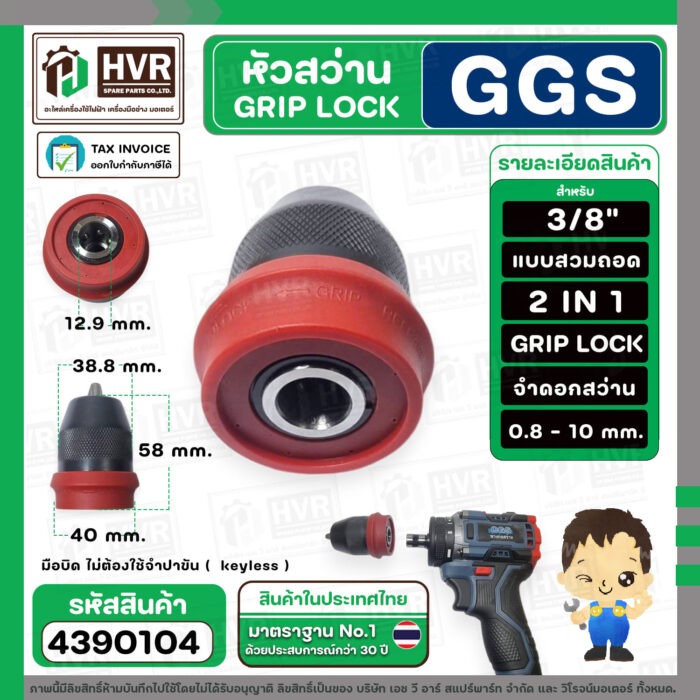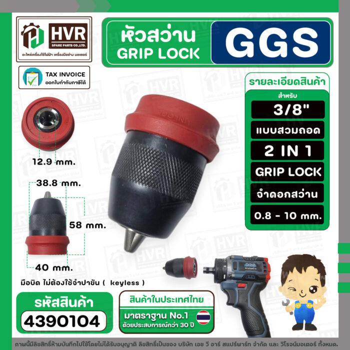 หัวสว่าน 3/8 ” GRIP LOCK แบบถอดสวม 2 IN 1 สำหรับใส่สว่านไร้สาย CGS 006-3 และทั่วไป ( SP-002 ) #4390104