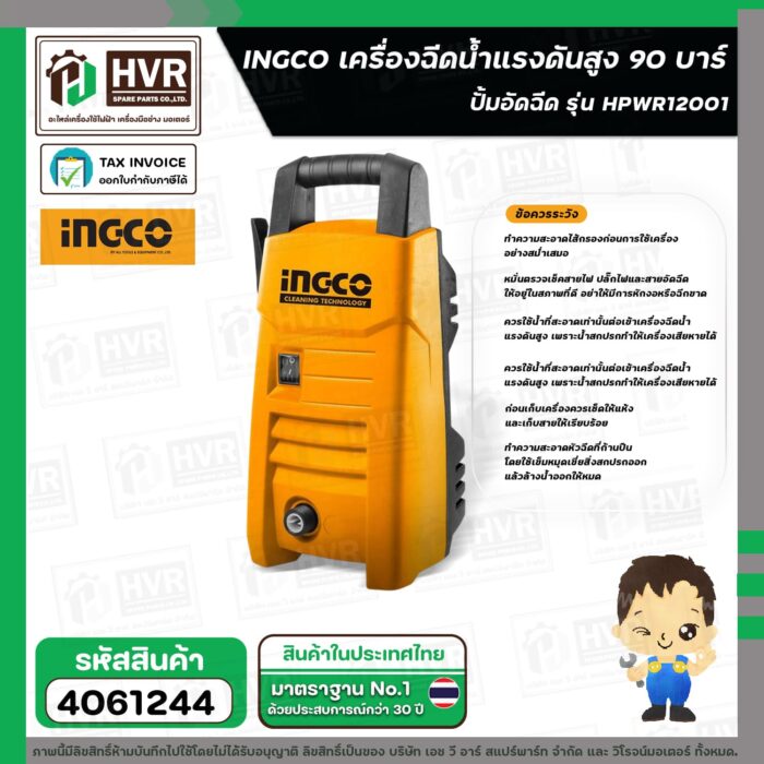 เครื่องฉีดน้ำแรงดันสูง 90บาร์ 1200W INGCO HPWR12001 #4061244