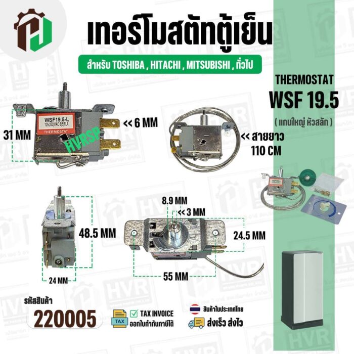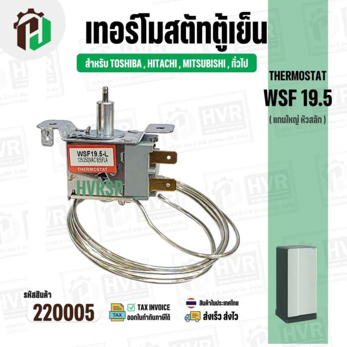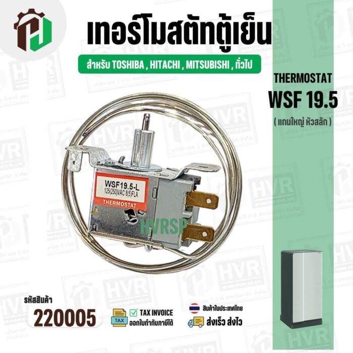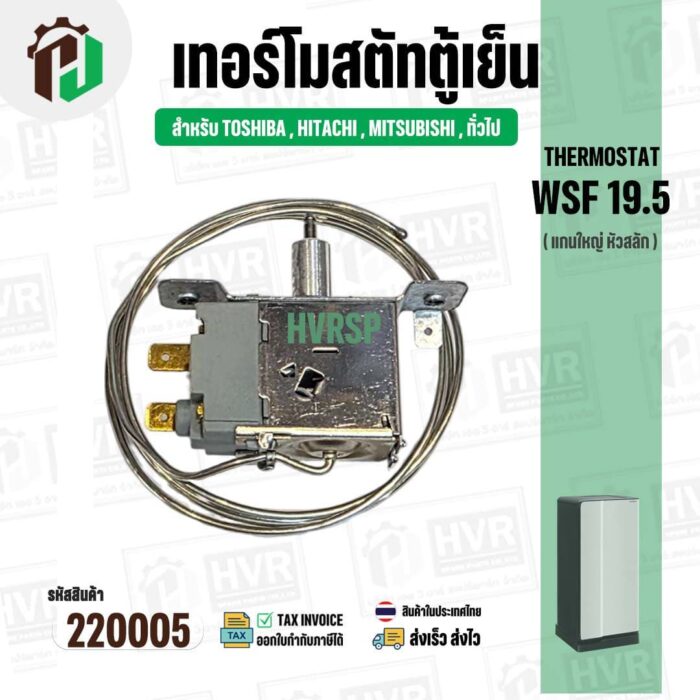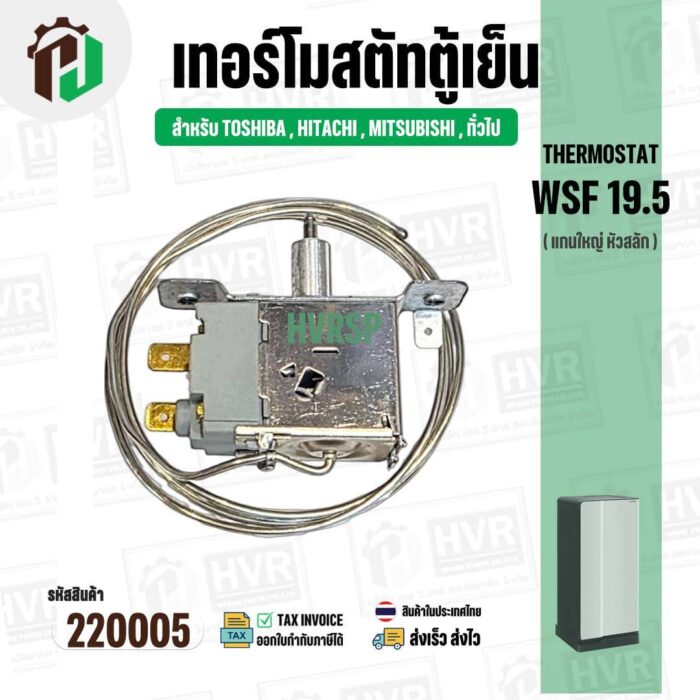 เทอร์โมสตัทตู้เย็น TOSHIBA , HITACHI , MITSUBASHI ( WSF19.5 ) ( แกนใหญ่ หัวสลัก ) ( สำหรับตู้เย็น 1 ประตู ) #220005