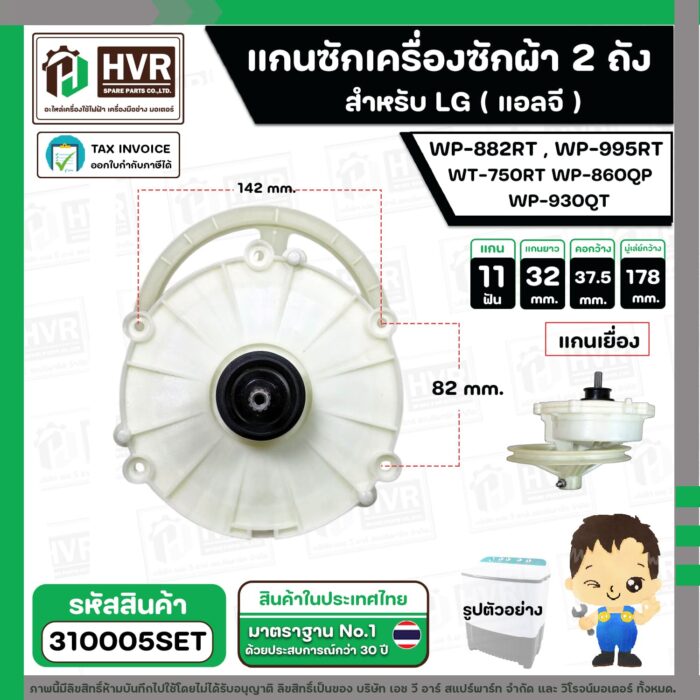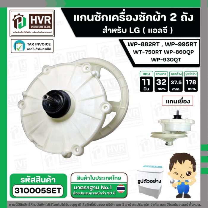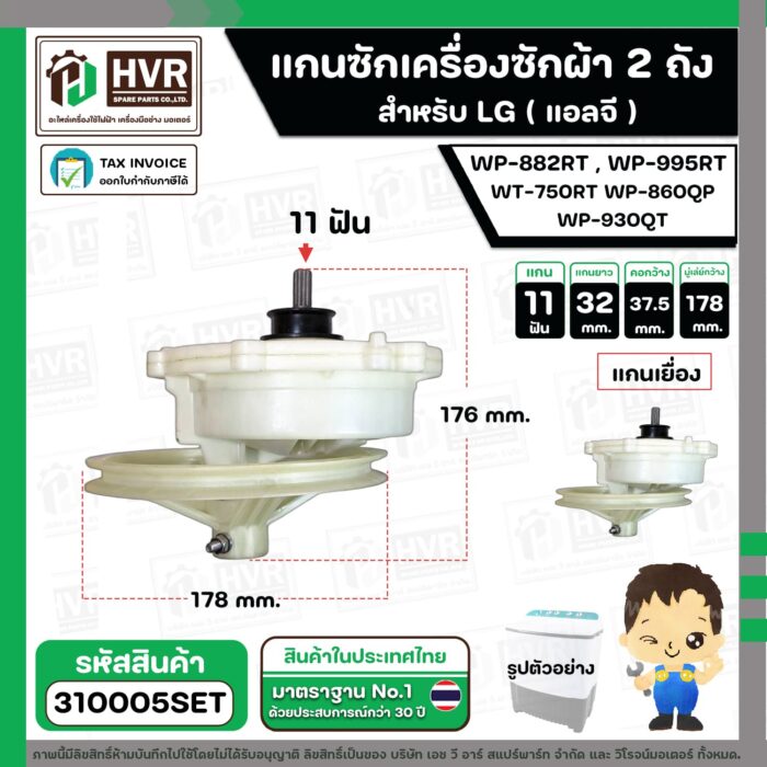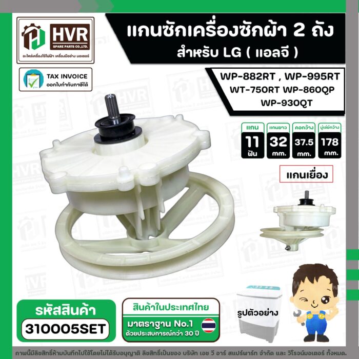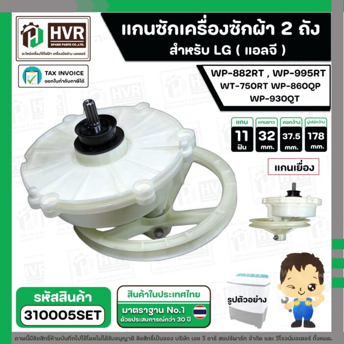 แกนซักพร้อมมู่เล่ย์เครื่องซักผ้า LG ( แอลจี ) WP-882RT , WP-995RT ,WT-750RT WP-860QP WP-930QT ( แกนเยื่อง ) ( 11 ฟัน มู่เล่ย์ 178 mm. ) #310005SET
