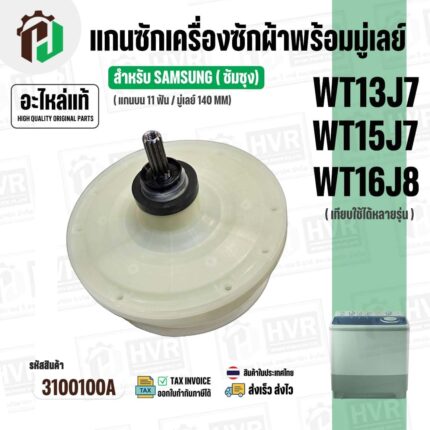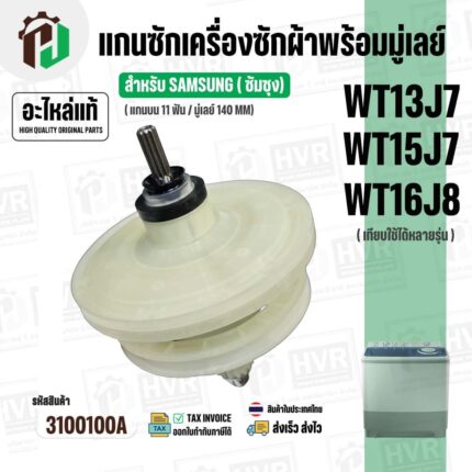 แกนซักเครื่องซักผ้าถังเดี่ยว LG ขนาด 8 -14 kg ( แกน 11 ฟัน คอยาว ) ( มู่เลย์เรียบ ) ( ใช้เกลียวน๊อต M8 ) #3600140