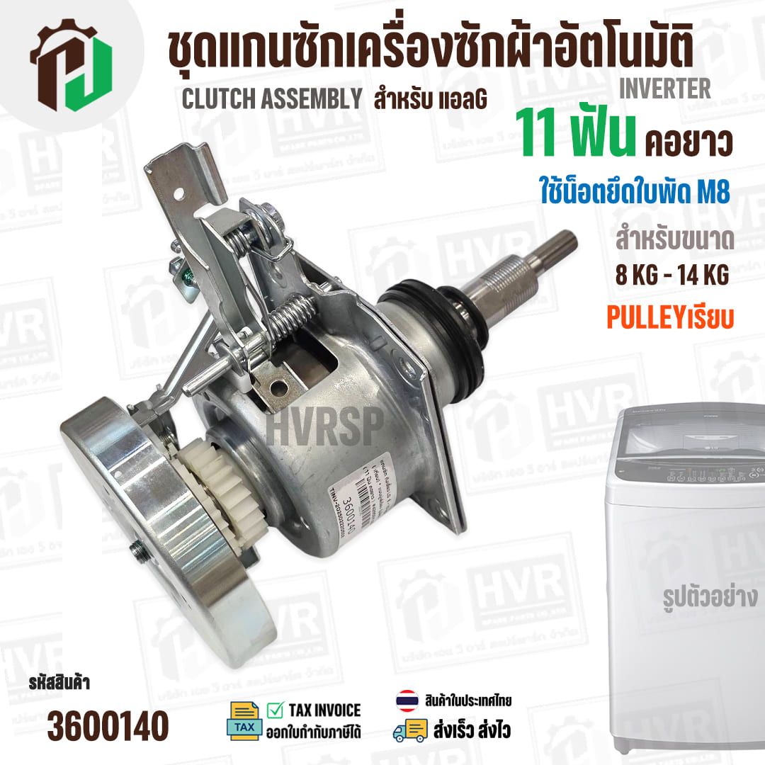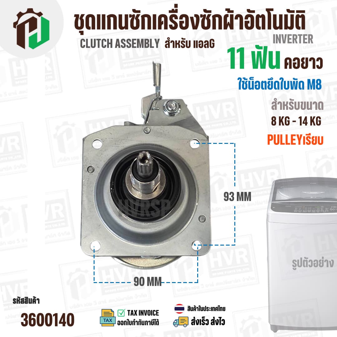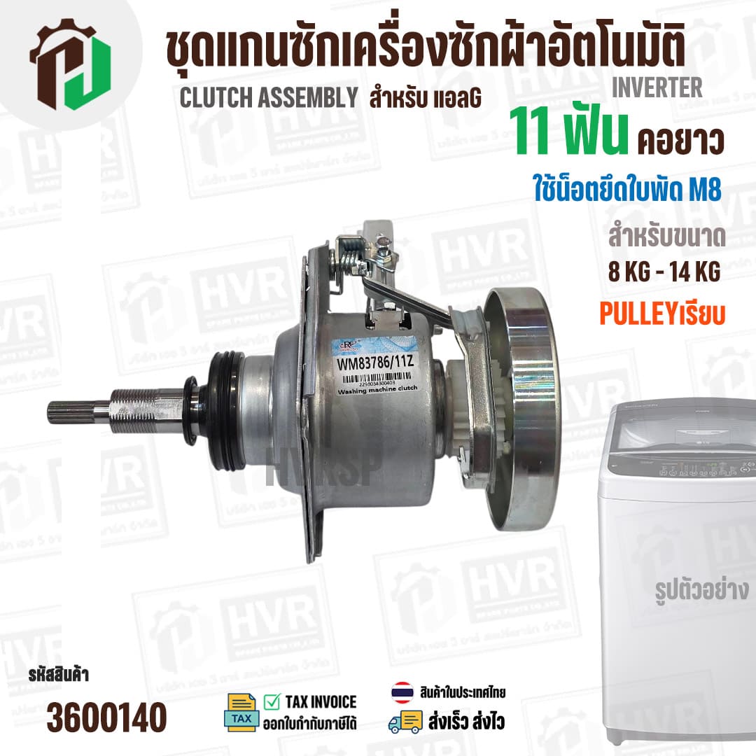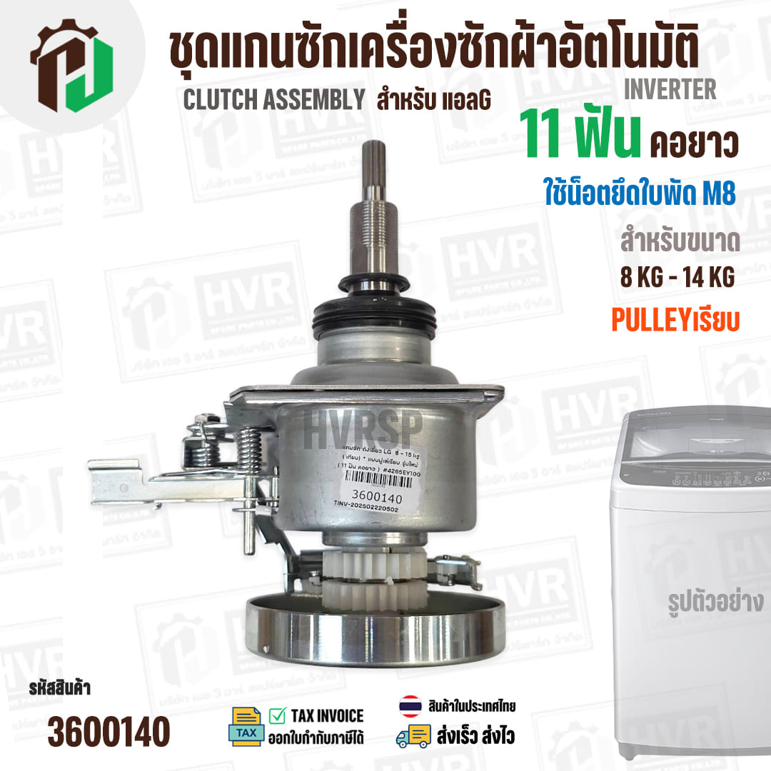 แกนซักเครื่องซักผ้าถังเดี่ยว LG ขนาด 8 -14 kg ( แกน 11 ฟัน คอยาว ) ( มู่เลย์เรียบ ) ( ใช้เกลียวน๊อต M8 ) #3600140