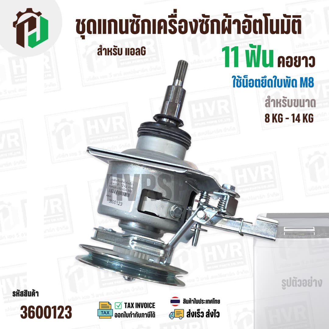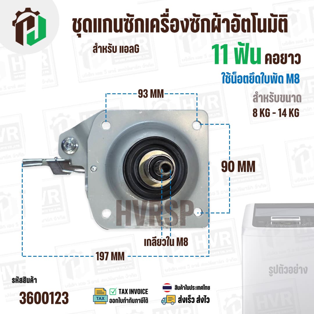 แกนซักเครื่องซักผ้าถังเดี่ยว LG ขนาด 8 -14 kg ( แกน 11 ฟัน คอยาว ) มู่เลย์ร่องใช้เกลียวน๊อต M8 #3600123