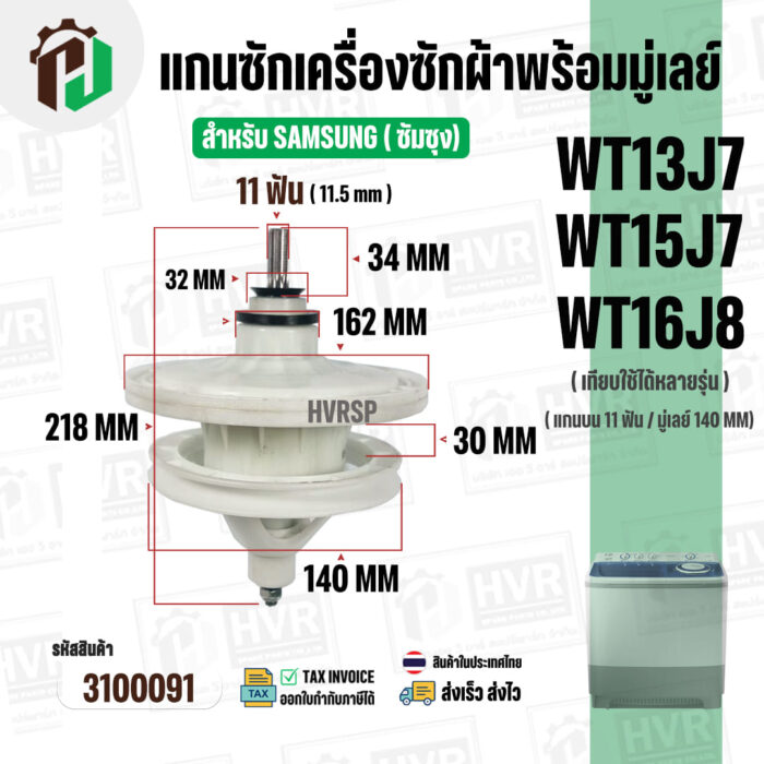 “แกนซักเครื่องซักผ้า SAMSUNG WT13J7 , WT157J , WT16J8 ( ( 11 ฟัน / พร้อมมู่เลย์ 140 MM )”