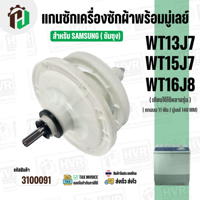 แกนซักเครื่องซักผ้า SAMSUNG WT13J7 , WT157J , WT16J8 ( ( 11 ฟัน / พร้อมมู่เลย์ 140 MM ) ( เกรด A ) #310091