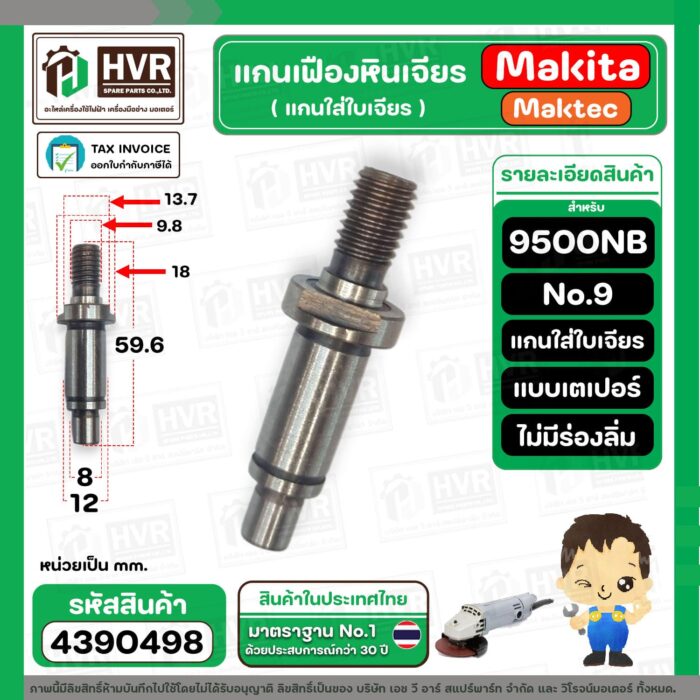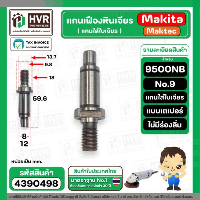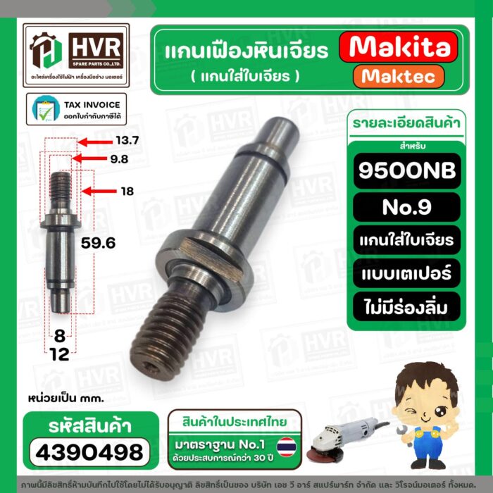 “แกนเฟืองหินเจียร MAKITA รุ่น 9500NB No.9 ( แกนจับใบเจียร ) #4390498 “