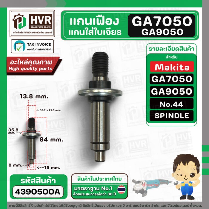 แกนเฟือง หินเจียร MAKITA GA7050 , GA9050 No.44 ( 140224-7 ) ( SPINDLE COMPLETE A ) ( แท้ ) #4390500A