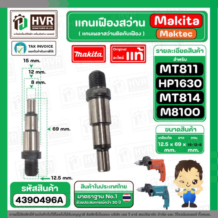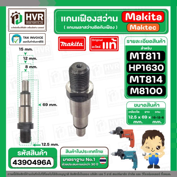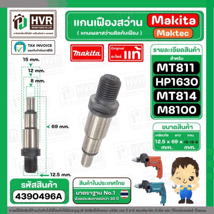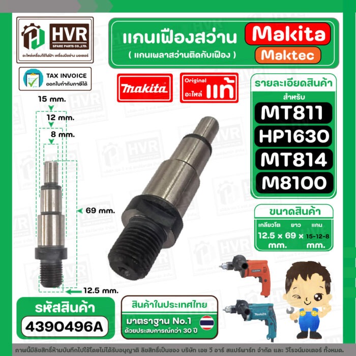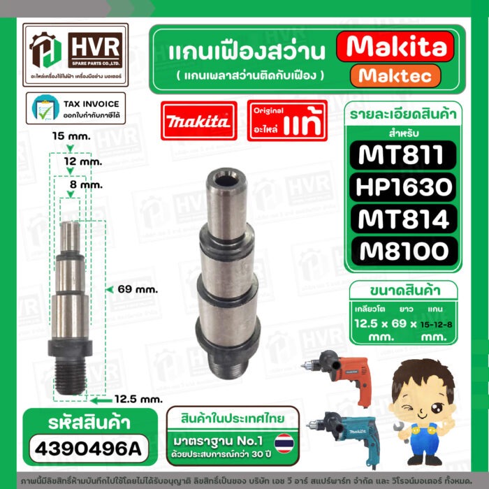 แกนเฟือง แกนใส่หัวสว่าน Makita Maktec รุ่น HP1630, M8100 ( No.8 ) MT811, MT813, MT814 ( No.7 ) ( แท้ ) #4390496A