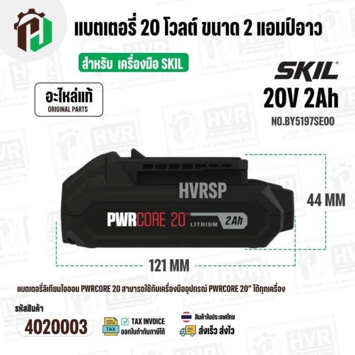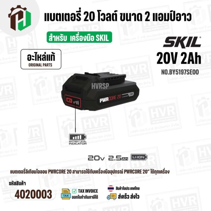 >> ในชุดประกอบด้วย : SKIL แบตเตอรี่ 20 โวลต์ ขนาด 2 แอมป์อาว