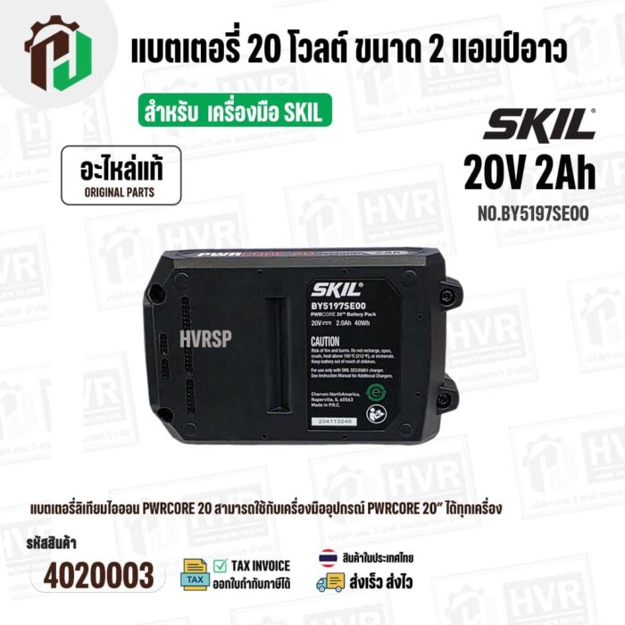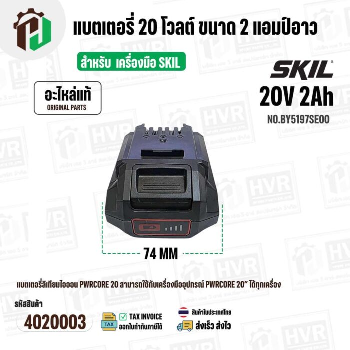 แบตเตอรี่ สำหรับเครื่องมือช่าง SKIL 20V 2.0 Ah ( BY5197SE00 ) ( แท้ ) #แบตเตอรี่ลิเทียมไอออน #4020003