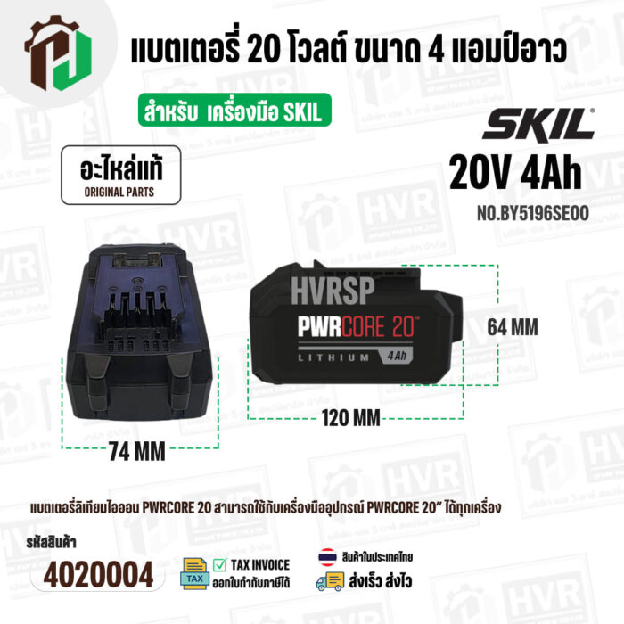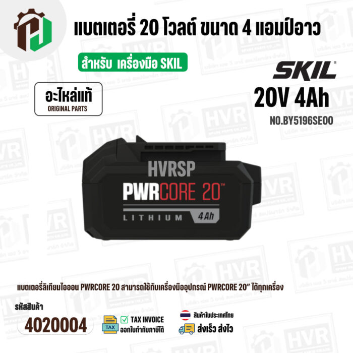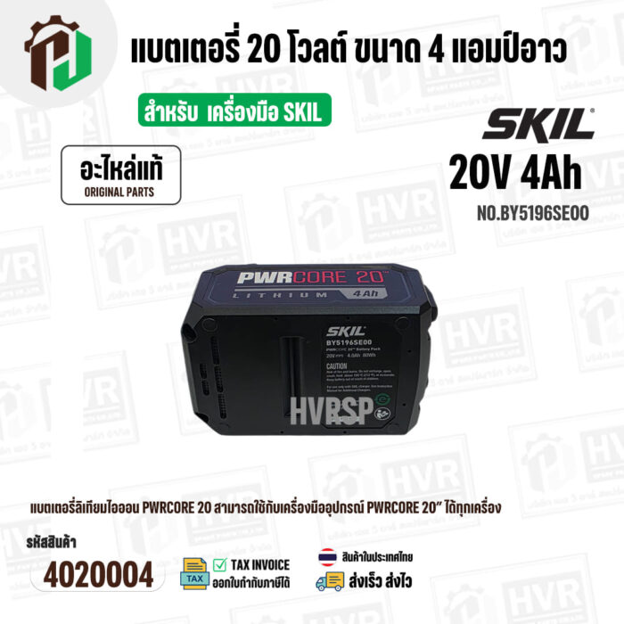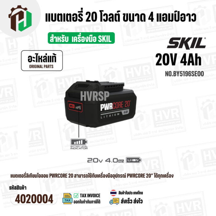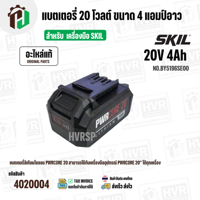 >> ในชุดประกอบด้วย : SKIL แบตเตอรี่ 20 โวลต์ ขนาด 4 แอมป์อาว