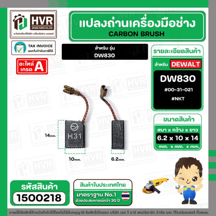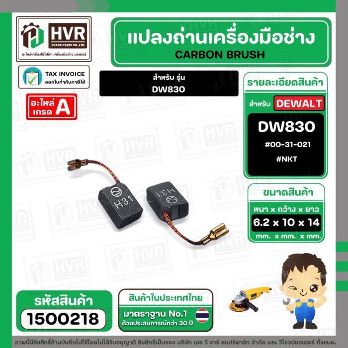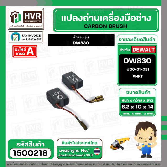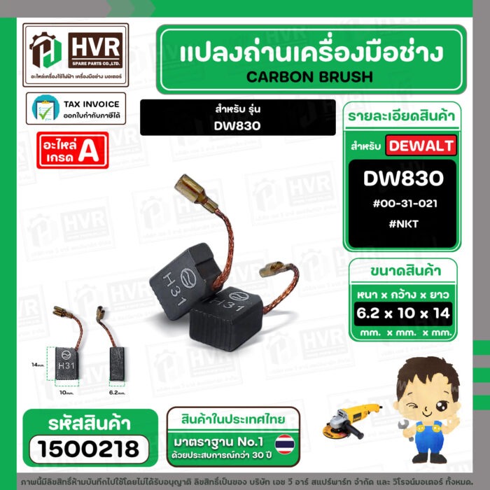 แปรงถ่าน สำหรับ DEWALT DW830 ( NKT ) #BK-21 #00-31-021 ( 6.2 x 10 x 14 mm.) (ราคา / 1 ชุด)