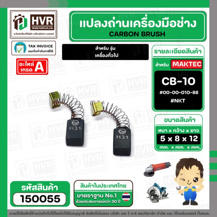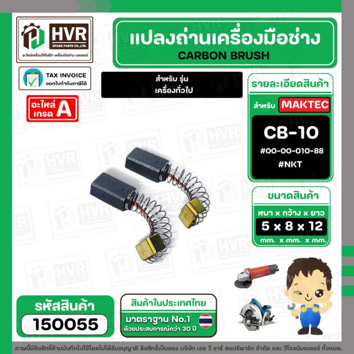 แปรงถ่าน สำหรับ MAKITA CB-10 ( NKT ) ( 5 x 8 x 12 mm. ) #00-00-010-88 (ราคา / 1 ชุด) #150055
