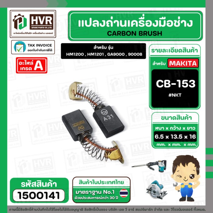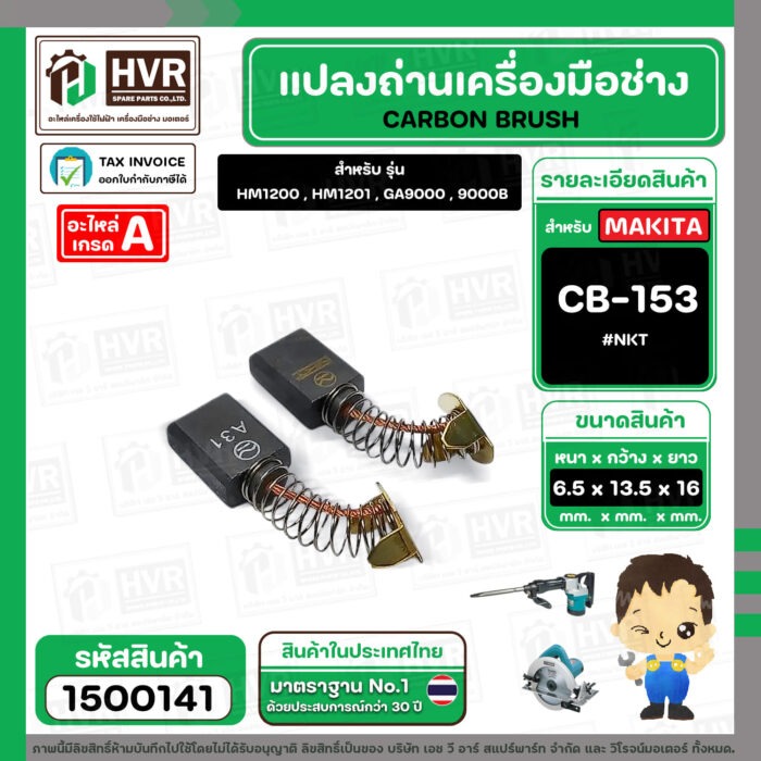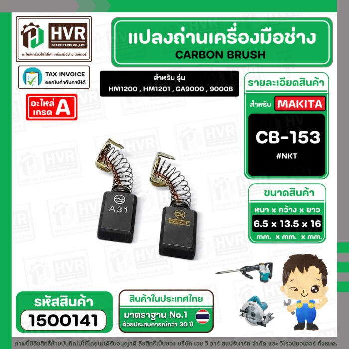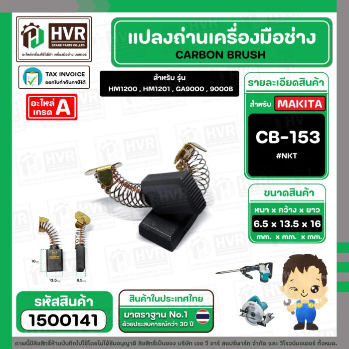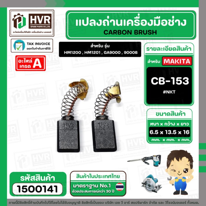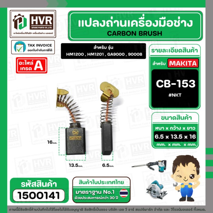 แปรงถ่าน สำหรับ MAKITA CB-153 ( NKT ) ( 6.5 x 13.5 x 16 mm. ) #00-00-153 (ราคา / 1 ชุด)