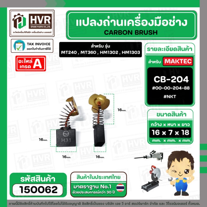 >> เบอร์ถ่าน CB-204 ( CB-200 , CB-203 , CB-204 ใช้ตัวเดียวกัน ) #00-00-204-88