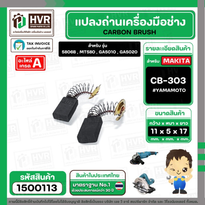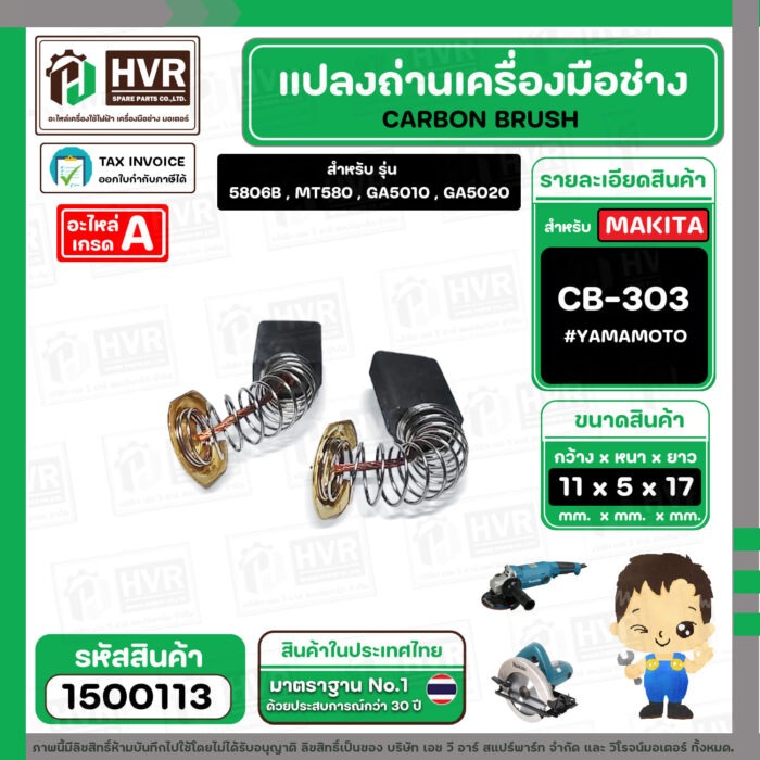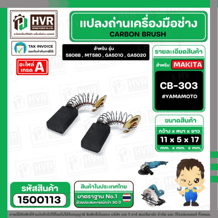 มาเป็นคนแรกที่วิจารณ์ “แปรงถ่าน สำหรับ MAKITA CB-303 ( YAMAMOTO ) ( 5 x 11 x 16.7 mm. )(ราคา / 1 ชุด) #1500113”