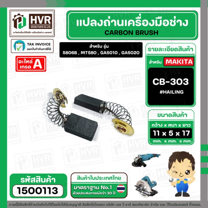 ———————————- >> รายละเอียดสินค้า <> ** อะไหล่คุณภาพ ( High Quality Part ) ** <> ใช้สำหรับเป็นอะไหล่แปรงถ่านเครื่องมือช่าง หินเจียร และใช้งานเครื่องมือใช้ไฟฟ้าทั่วไป