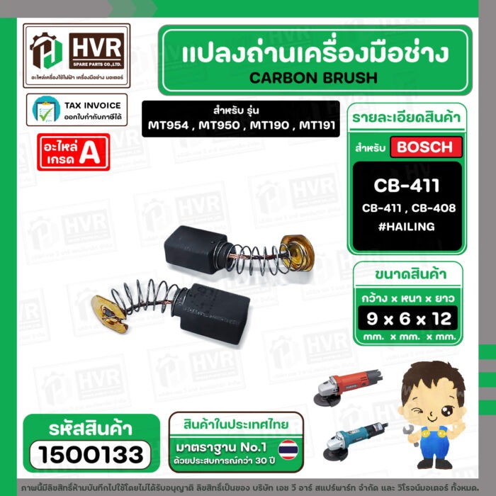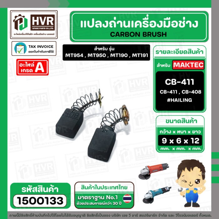 แปรงถ่าน CB-411, CB-408 ( HAILING ) (AUTO CUT) ( 6 x 9 x 12 mm. )(ราคา / 1 ชุด)