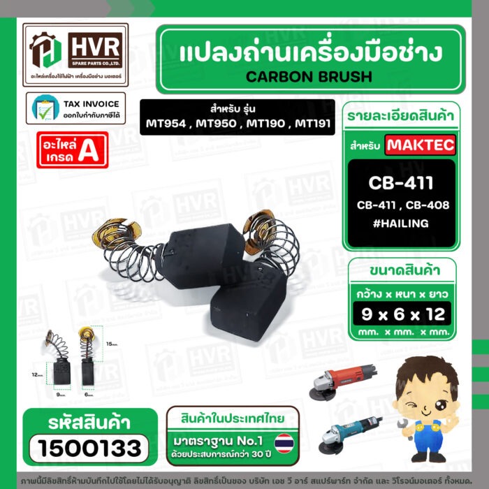 แปรงถ่าน สำหรับ MAKITA CB-411, CB-408 ( HAILING ) (AUTO CUT) ( 6 x 9 x 12 mm. )(ราคา / 1 ชุด)