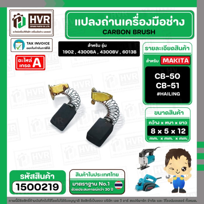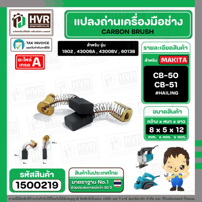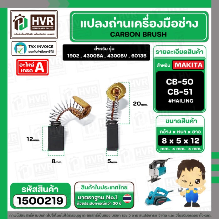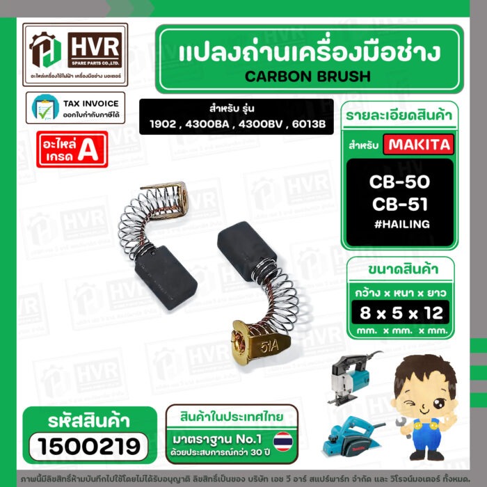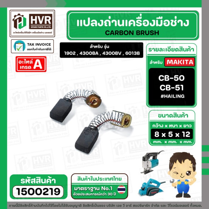 แปรงถ่าน สำหรับ MAKITA CB-50 ทดแทน CB-51 ได้ ( HAILING ) ( 5 x 8 x 12 mm. (ราคา / 1 ชุด) #1500219