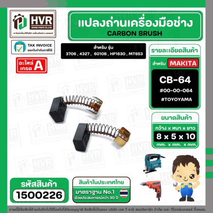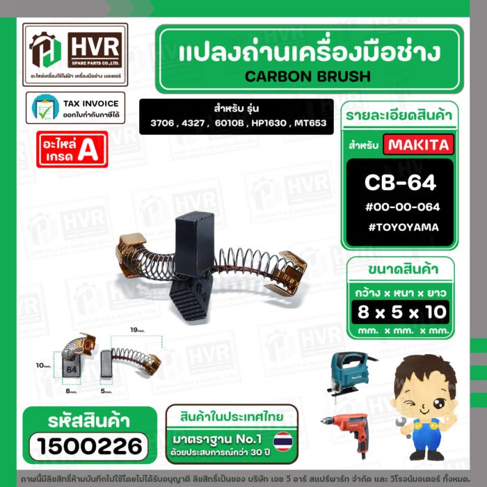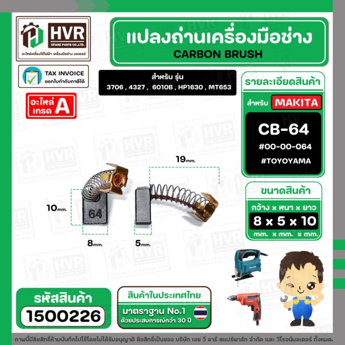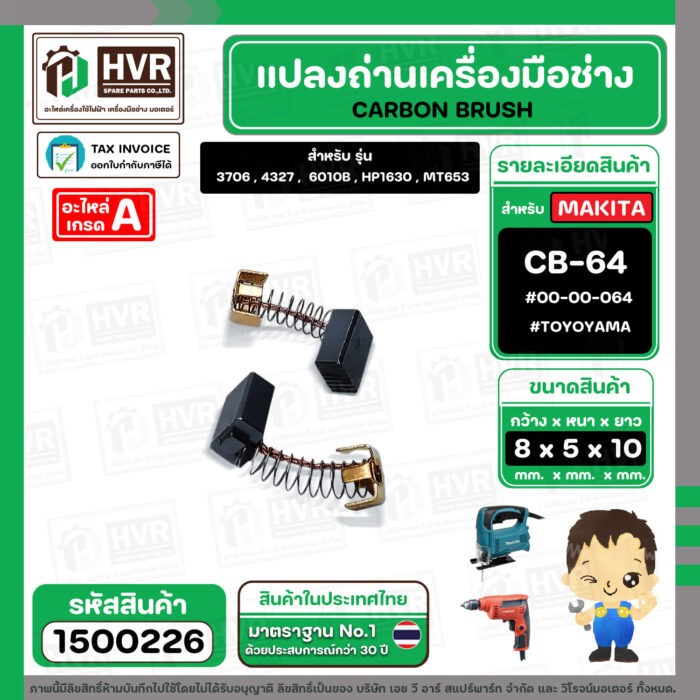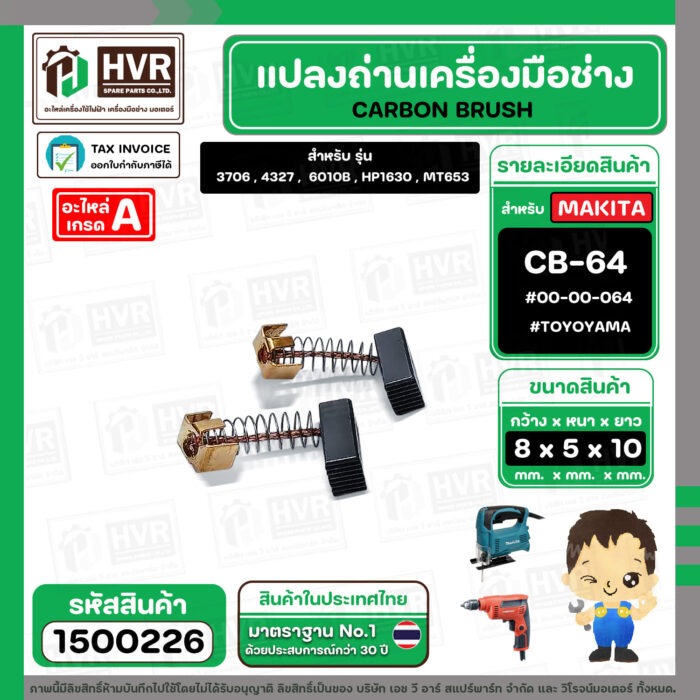 ———————————- >> รายละเอียดสินค้า <> ** อะไหล่คุณภาพ ( High Quality Part ) ** <> ใช้สำหรับเป็นอะไหล่แปรงถ่านเครื่องมือช่าง และใช้งานเครื่องมือใช้ไฟฟ้าทั่วไป