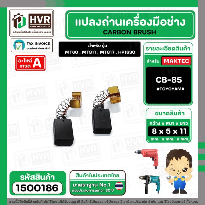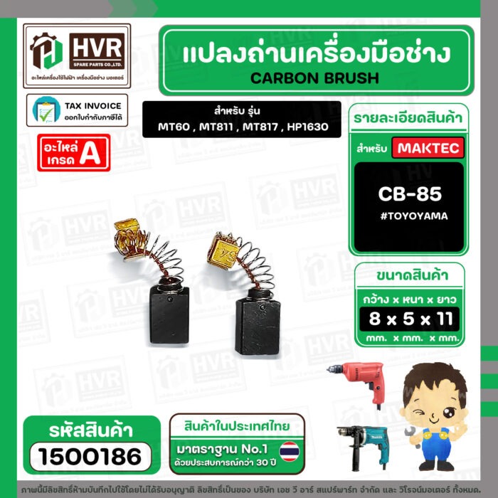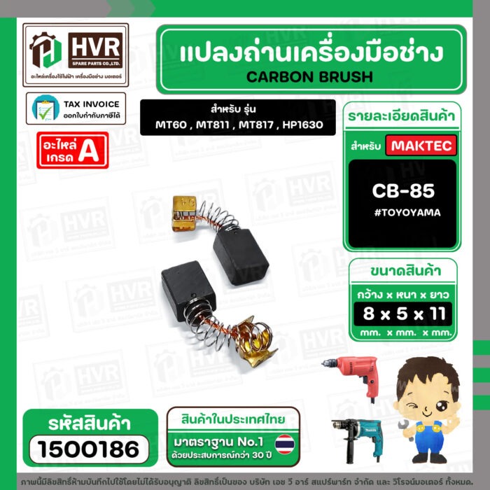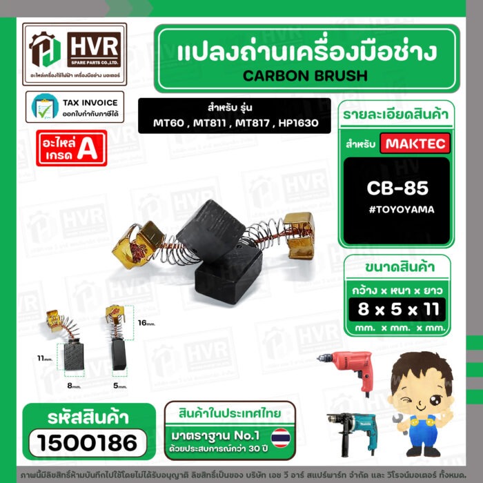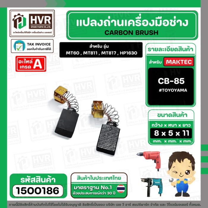 แปรงถ่าน สำหรับ MAKITA CB-85 ( TOYOYAMA ) ( 5 x 8 x 11 mm. )(ราคา / 1 ชุด) #1500186