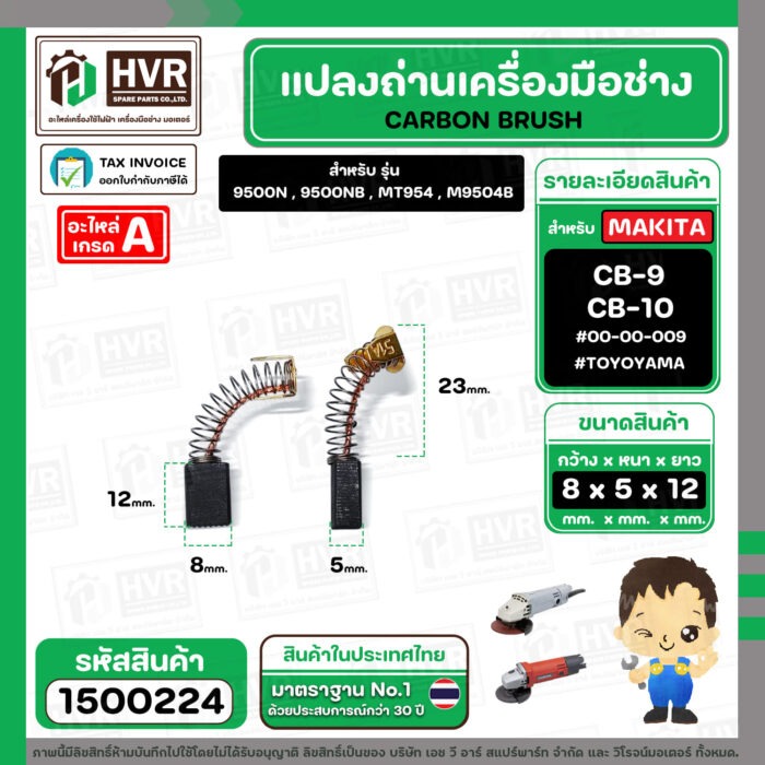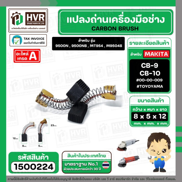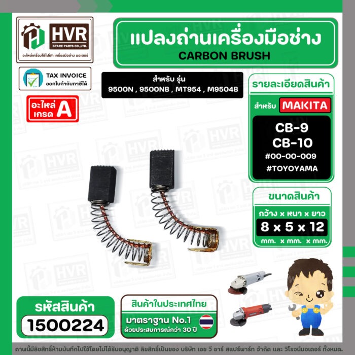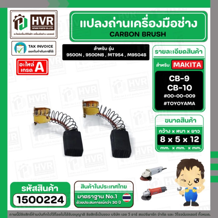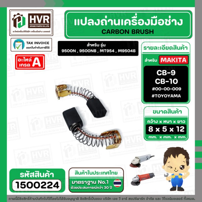 แปรงถ่าน สำหรับ MAKITA CB-9 ( CB-10 ) ( TOYOYAMA ) ( เขียว ) ( 5 x 8 x 12 mm. ) #00-00-009 (ราคา / 1 ชุด) #1500224