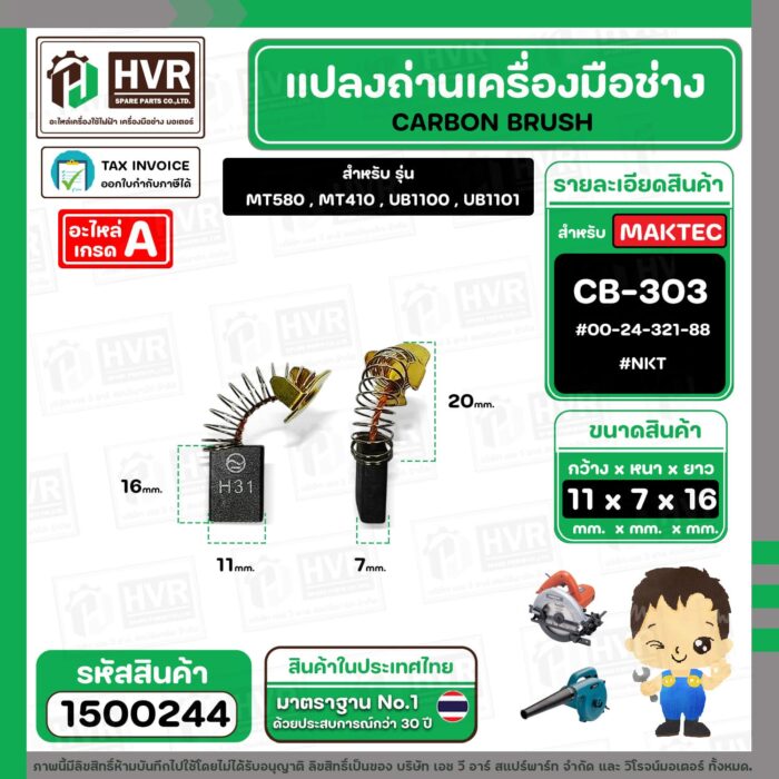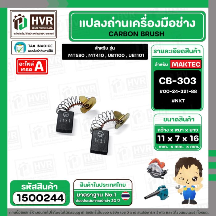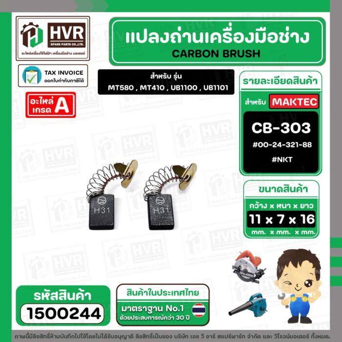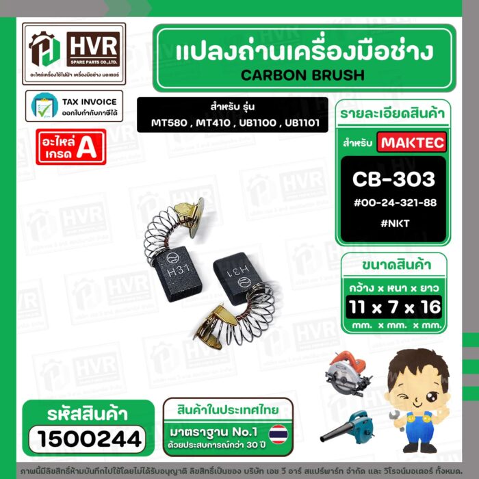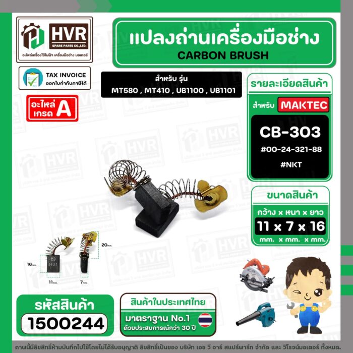 แปรงถ่าน สำหรับ MAKTEC MT580 , MT410 ( CB-303 ) ( NKT ) ( 5 x11 x 16.7 mm. ) #00-24-321-88 (ราคา / 1 ชุด)