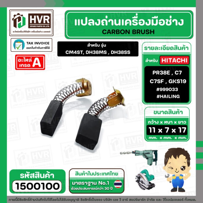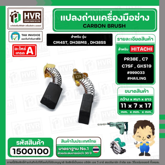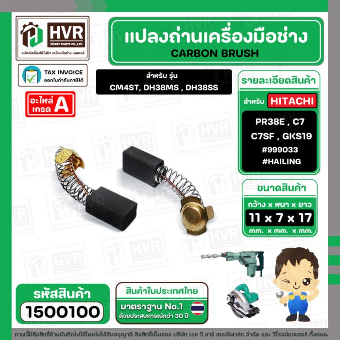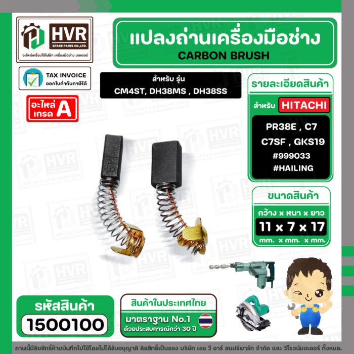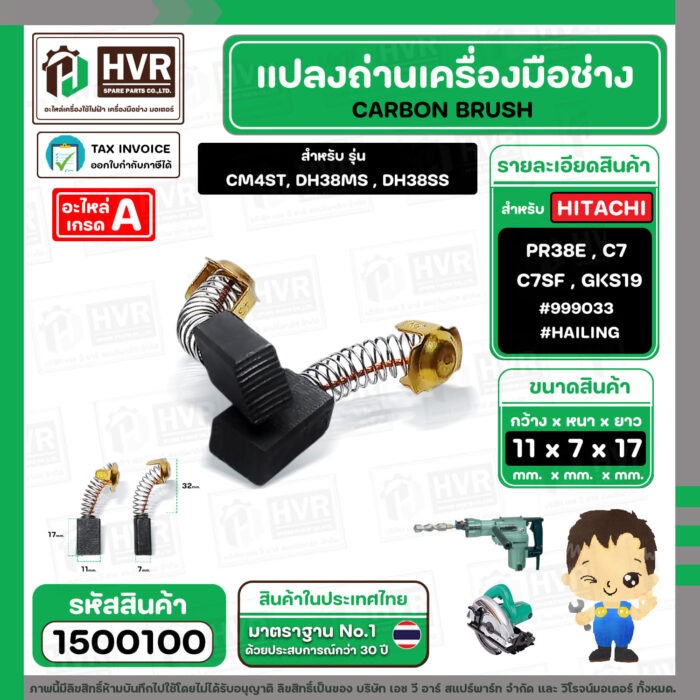 แปรงถ่าน สำหรับ HITACHI PR38E , C7 , C7SF , BOSCH GKS190 รุ่นเก่า ( HAILING ) ( 7 x 11 x17 mm. ) #999033 #H-043 (ราคา / 1 ชุด)