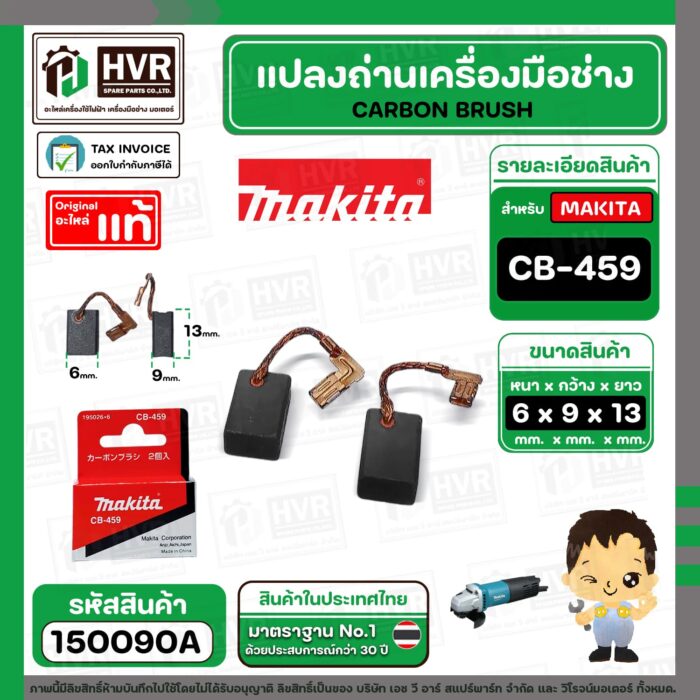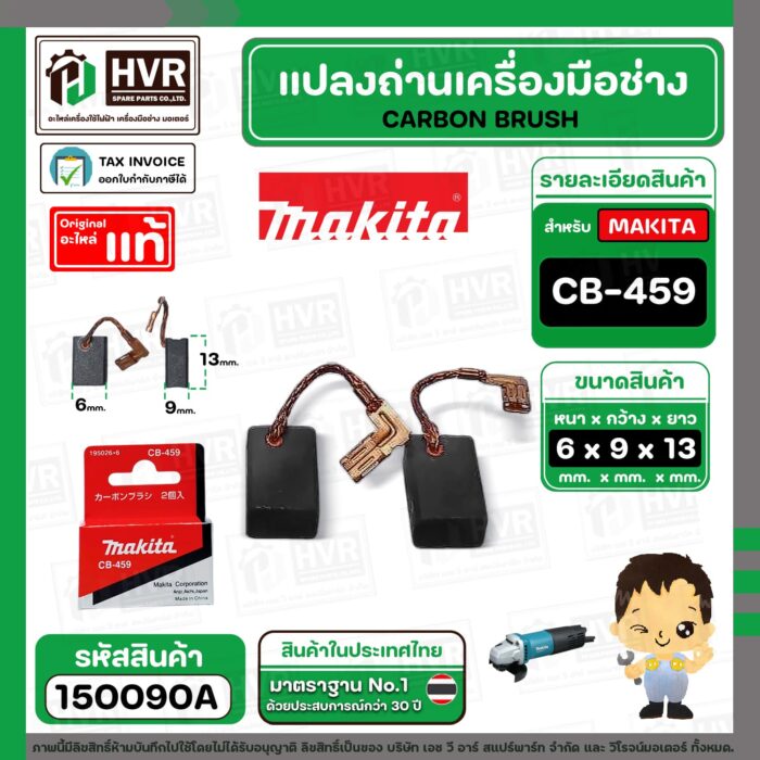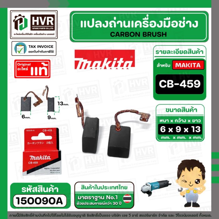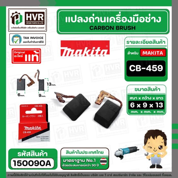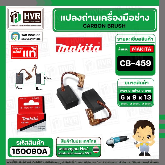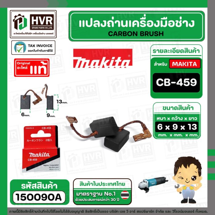 แปรงถ่าน CB-459 ( MAKITA ) ( 6 x 9 x 13 mm. ) ( 195026-6 ) ( แท้ ) (ราคา / 1 ชุด) #Carbon BRUSH CB-459 #150090A