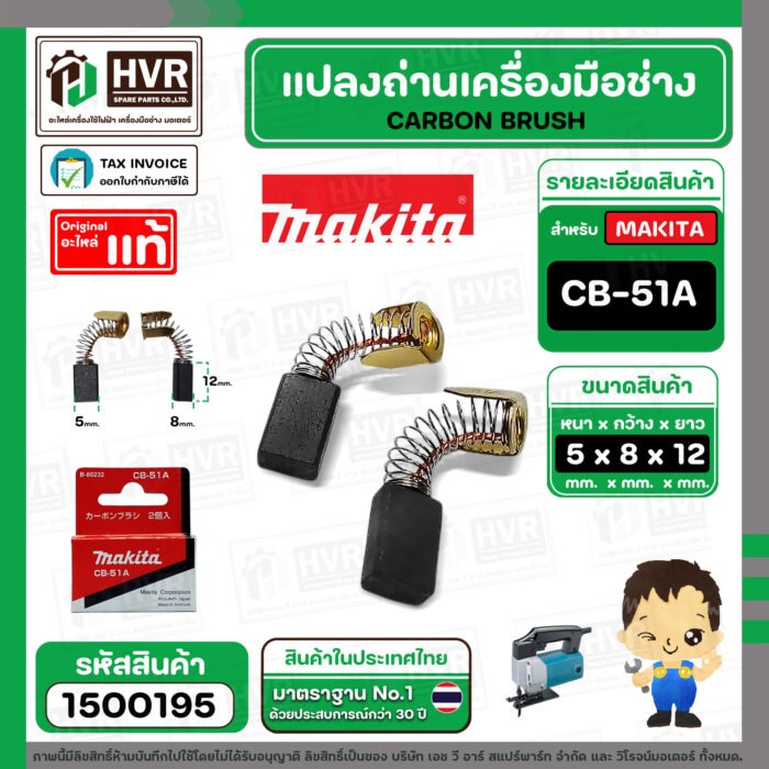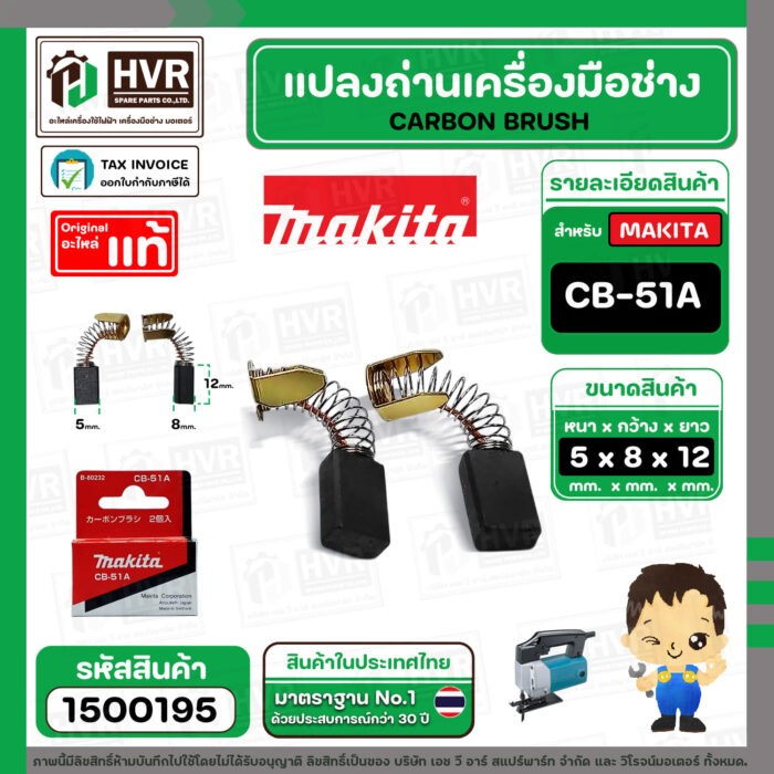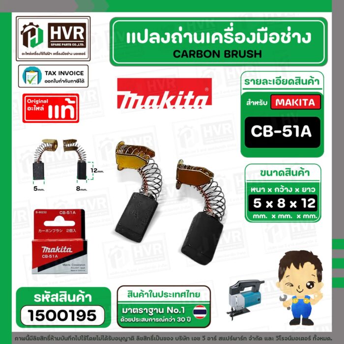 มาเป็นคนแรกที่วิจารณ์ “แปรงถ่าน CB-50 , CB-51 ( MAKITA ) ( 5 x 8 x 12 mm.) ( B-80232 ) ( แท้ ) #Carbon BRUSH (ราคา / 1 ชุด) #1500195” ยกเลิกการตอบ