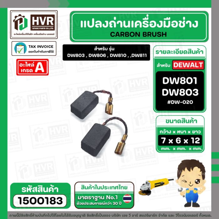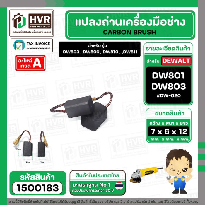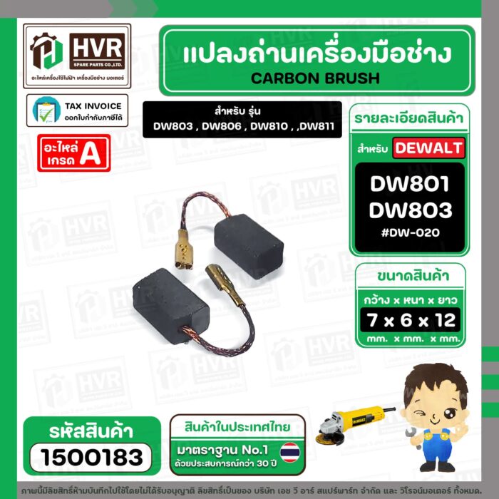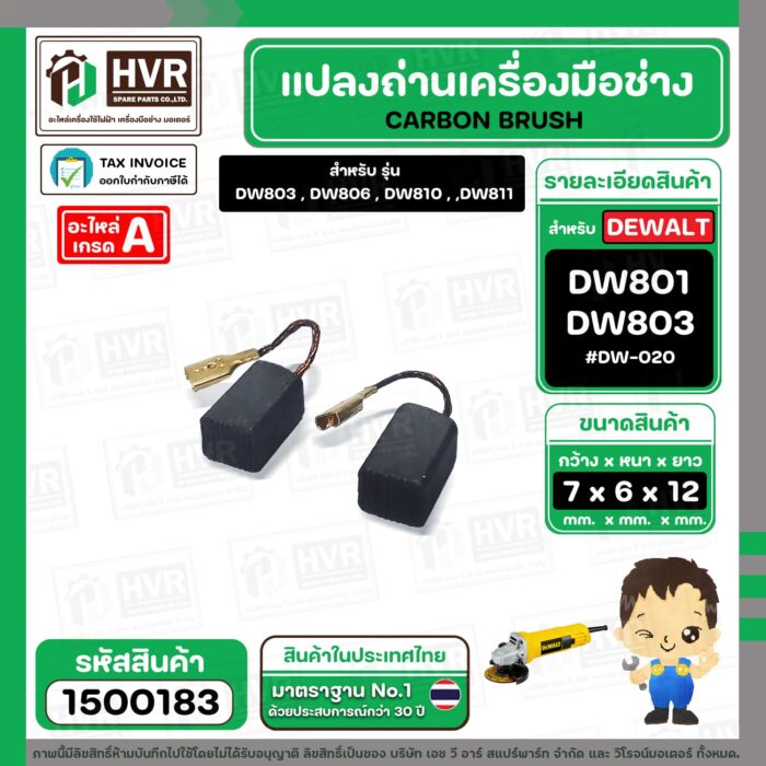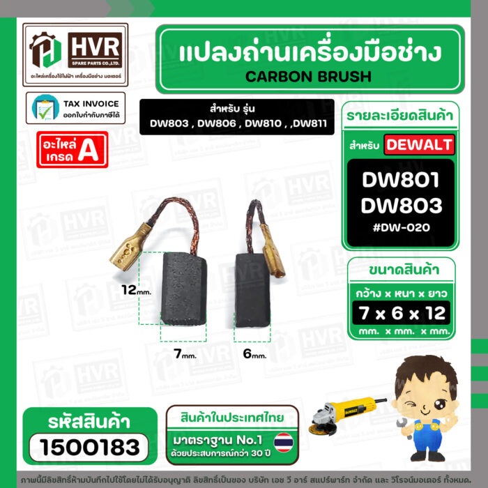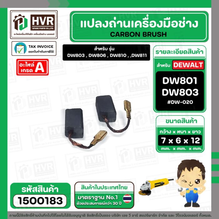 แปรงถ่าน DEWALT DW801 , DW803 , DW806 , DW810 ,DW811 ( YAMAMOTO ) ( 6.3 x 8 x 13.5 ) #DW-020 (ราคา / 1 ชุด) #1500183