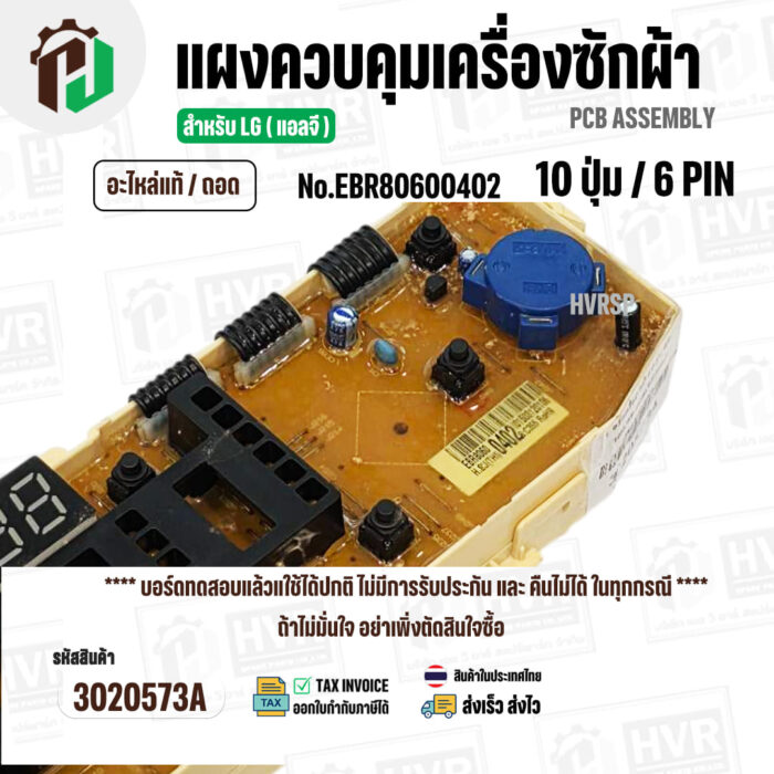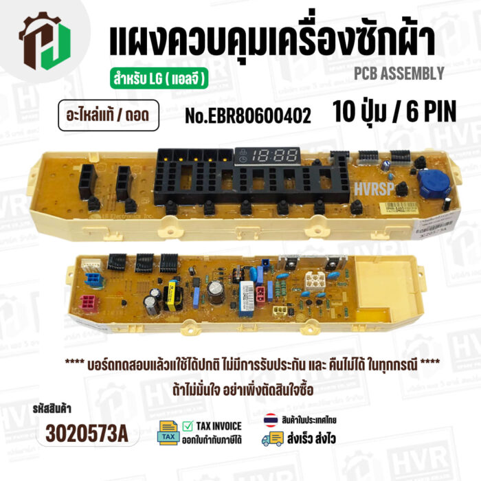 แผงควบคุมเครื่องซักผ้า LG WF-T1080,WF-T1180,WF-S1017 ( EBR80600402 ) ( PCB Assembly ) ( แท้ / ถอด ) #3020573A
